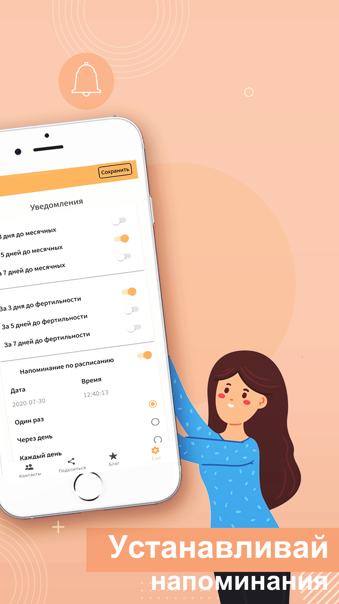 Selin: Отслеживайте свой цикл, получайте напоминания, планируйте беременность, следите за своим здоровьем. Selin - это идеальное приложение-календарь для женщин любого возраста, которые хотят взять свое репродуктивное здоровье под контроль. Наша передовая технология упрощает отслеживание цикла, помогает легко контролировать женское здоровье и получать персонализированные напоминания. ПРОСТОТА С чистым и интуитивно понятным интерфейсом Selin легок в использовании, что делает отслеживание цикла легким. Больше не нужно догадываться. Простые инструменты, которые помогут контролировать свое менструальное здоровье. ОТСЛЕЖИВАНИЕ МЕСТРУАЛЬНОГО ЦИКЛА И КАЛЕНДАРЬ ПЕРИОДА Наши прогнозирующие алгоритмы оценивают даты начала и окончания менструального цикла, так чтобы вы могли планировать и готовиться заранее. Скажите "прощай" неожиданным сюрпризам и "здравствуй" предсказуемости. ПЛАНИРОВАНИЕ БЕРЕМЕННОСТИ Максимизируйте свои шансы на естественное зачатие с помощью калькулятора овуляции и беременности Selin. Приложение использует передовую технологию для расчета наиболее зачаточных дней и предоставляет персонализированный прогноз. А также полезные напоминания, с помощью которых вы не упустите ни одной возможности. Независимо от того - вы в начале своего пути или пытаетесь уже давно, приложение Selin станет вашим надежным ресурсом для зачатия. ОТСЛЕЖИВАНИЕ КОНТРАЦЕПЦИИ Независимо от того, какой метод контрацепции вы используете, Selin поможет следить за установленным графиком. Вы можете добавить напоминания о приеме средств и оставаться на пути к своей контрацептивной стратегии. ПЕРСОНАЛИЗИРОВАННЫЕ НАПОМИНАНИЯ Вы можете настроить напоминания для себя и близких, с помощью которых не пропустите принятие таблеток, визит к врачу или важную дату. Selin - это как личный помощник в вашем кармане, который напомнит, когда пришло время. ОТСЛЕЖИВАНИЕ СИМПТОМОВ Selin помогает отслеживать ваши ежедневные симптомы, настроение, выделения. Добавлять заметки, связанные с менструальным циклом, такие как боли, вздутие и утренняя тошнота. Что позволит обнаружить закономерности, выявить изменения и действовать при необходимости. НЕСКОЛЬКО ПРОФИЛЕЙ Вы можете добавить несколько профилей для членов семьи и отслеживать их менструальные циклы вместе с вашим собственным. С Selin легко оставаться в курсе репродуктивного здоровья вашей семьи. НАПОМИНАНИЯ ДЛЯ ЧЛЕНОВ СЕМЬИ Вы можете легко создавать напоминания для покупки тампонов, прокладок или других средств гигиены. С Selin вы никогда не будете беспокоиться о том, что забыли купить средства личной гигиены. И можете быть уверены, что вы и члены вашей семьи всегда подготовлены. С помощью Selin вы можете следить за своим менструальным здоровьем, отслеживать цикл и получать персонализированные напоминания - все в одном простом приложении. Не ждите больше, возьмите контроль над своим менструальным здоровьем сегодня!
