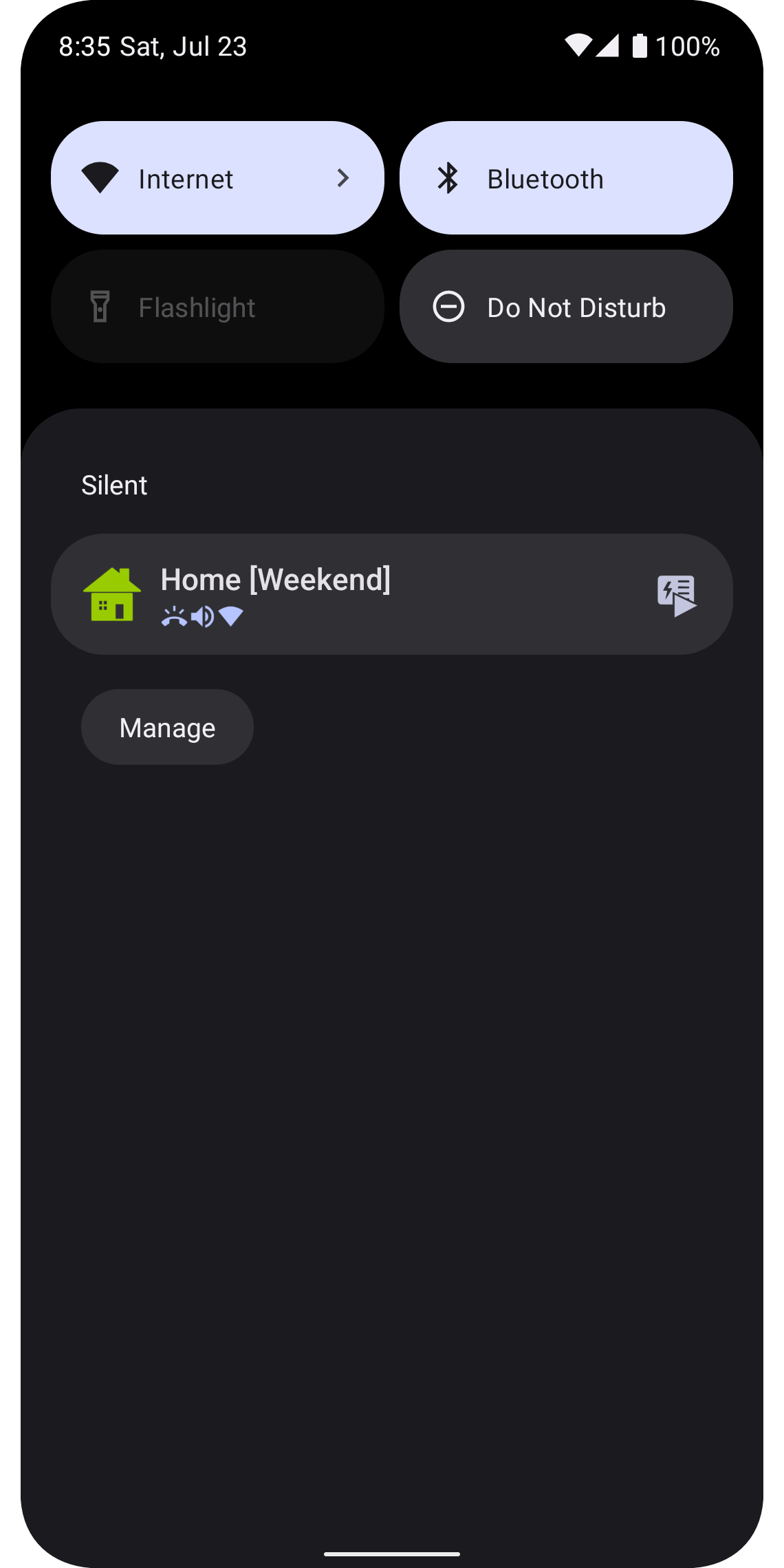 PhoneProfilesPlus allows automatically or with one click configuring the device for life situations (at home, at work, in your car, sleep outside, ...).
