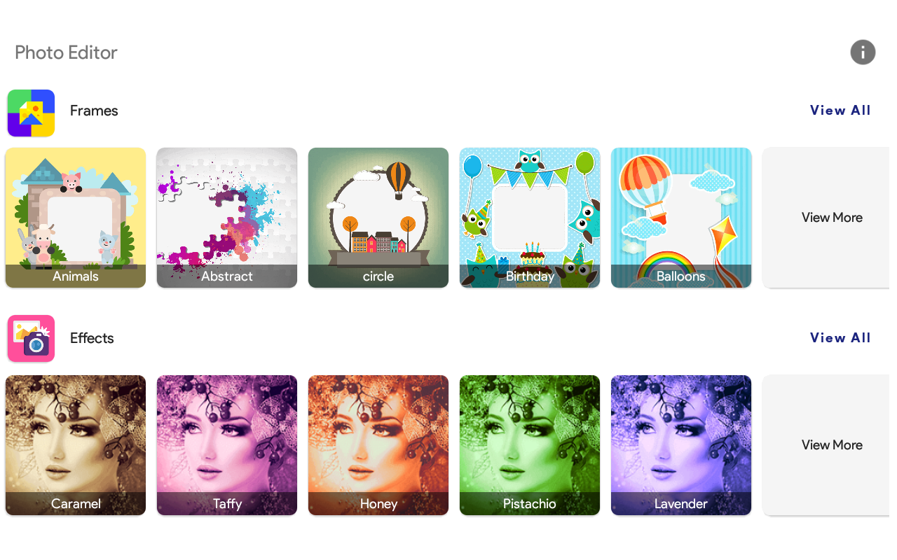 Version 1.1.15 ✓ Photo Editing - Cropping, Rotate, Flip, Brightness, Contrast etc.. ✓ Photo Effects - Variety of stunning Photo Effects ✓ Photo Filter, Photo Frames - Hundreds of filter options and elegant frames to make your picture more beautiful. ✓ Photo Montage, Photo Drawing, Photo Text and much more... ✓ New look and design, latest Androd (Android Pie) Supoprt