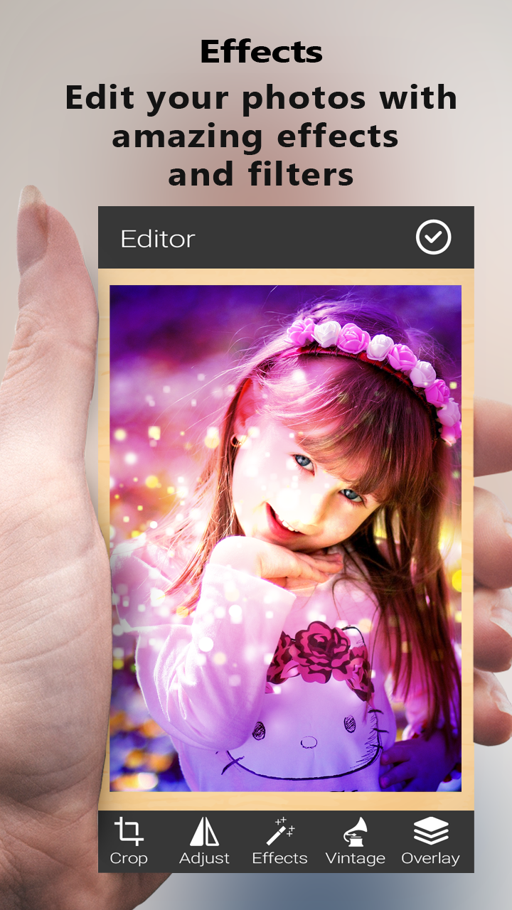 Захват изображения с камеры мобильного или выбрать его из галереи и плавно применять фотографические эффекты, фильтры, удивительные наклейки на него. Обрежьте фотографию с сохранением наилучшее соотношение сторон.