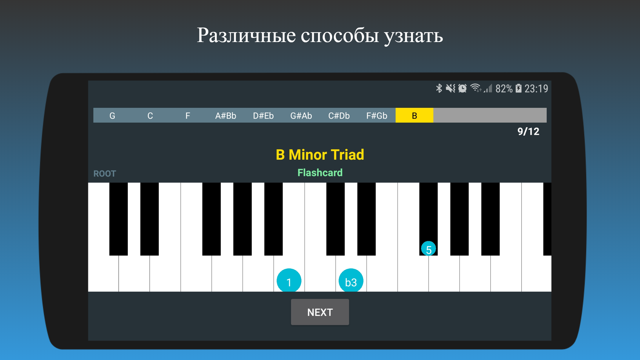 Added Dominant 7th chords (all inversions). Fixed Blues Major scale error. Added Augmented scale. Added Blues Nonatonic and Hexatonic scales. Added language support for 21 countries (more improvements and languages coming!). Added Chord Extensions quiz. Fixed layout issues for some devices.