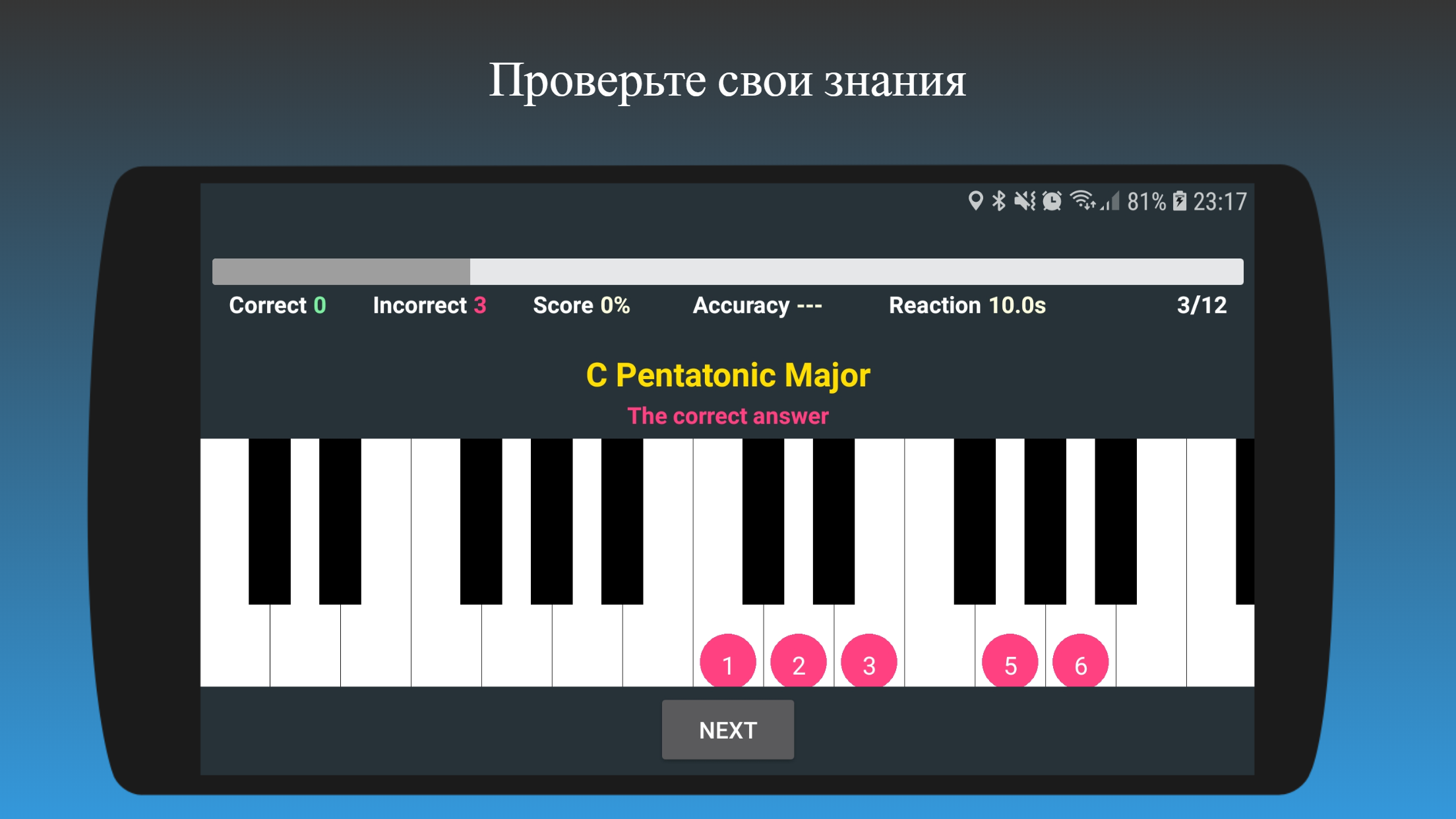 ➡️ Вы изо всех сил пытаетесь вспомнить аккорды фортепиано и гаммы? ➡️ Вы потерялись, когда дело доходит до игры на разных клавишах? ➡️ Вам скучно по теории, и вы просто хотите играть? ➡️ Хотите быстро учиться, но у вас мало времени? 🙋 Это приложение для вас! Это приложение разработано, чтобы помочь пианистам быстро и эффективно выучить и запомнить теорию пианино. 😀 Аккорды для фортепиано Это приложение учит основных типов аккордов, таких как основные триады, седьмые аккорды, аккорды увеличенного и уменьшенного типа. Он также учит одни и те же аккорды в разных инверсиях, так что вы можете научиться играть на аккордах по-разному! ✌️ Весы для фортепиано Это приложение учит основные гаммы, используемые в музыке, в том числе мажорные, минорные и мелодичные минорные. В приложении также есть режимы для каждого из этих масштабов. Все четко обозначено, чтобы вы могли видеть, какой режим относится к каким масштабам. Другие важные весы включают весы для блюза, пентатоника и бибопа для джазовых игроков! 😎 Интервалы для фортепиано Приложение учит возрастанию и убыванию интервалов. Научитесь свободно владеть клавиатурой благодаря этим знаниям! Зачем изучать теорию фортепиано? Научиться играть на аккордах и гаммах для фортепиано - важный навык, если вы хотите играть джаз, поп, рок, соул или госпел. Понимание теории аккордов и гаммы фортепиано также позволит вам свободно импровизировать на фортепиано. Практика с этим приложением каждый день поможет вам визуализировать образцы аккордов и гаммы на клавиатуре. Это также поможет вам развить ваше понимание теории музыки. 🚀 Особенности ⭐ Более 100 основных аккордов и гамм! ⭐ Простой и элегантный пользовательский интерфейс. ⭐ Простота в использовании и никаких инструкций не требуется. ⭐ Красивый реальный звук пианино взят из рояля Steinway. ⭐ Выбор стилей обучения. ⭐ Интерактивное обучение. ⭐ Режим флешкарты. ⭐ Таймер на основе викторины. ⭐ В режиме викторины есть интеллектуальный таймер, который подстраивается под ваш уровень. ⭐ Узнайте круг четверти и пятые с этим приложением. ⭐ Смотрите напоминания о том, что практиковать! ⭐ Подробная статистика, которая позволит вам отслеживать вашу точность и время реакции. Выберите премиум, чтобы стать профессионалом! ✔️ Нет больше надоедливой рекламы, вы можете просто сосредоточиться на обучении. ✔️ Получите доступ ко всем заблокированным функциям в приложении! ✔️ Абоненты получают приоритет по всем запросам и улучшениям! ✔️ Отличное качество по низкой цене! ✔️ Приложение постоянно обновляется свежим контентом эксклюзивно для подписчиков! Загрузите приложение сейчас, чтобы начать путешествие к освоению фортепианной клавиатуры!