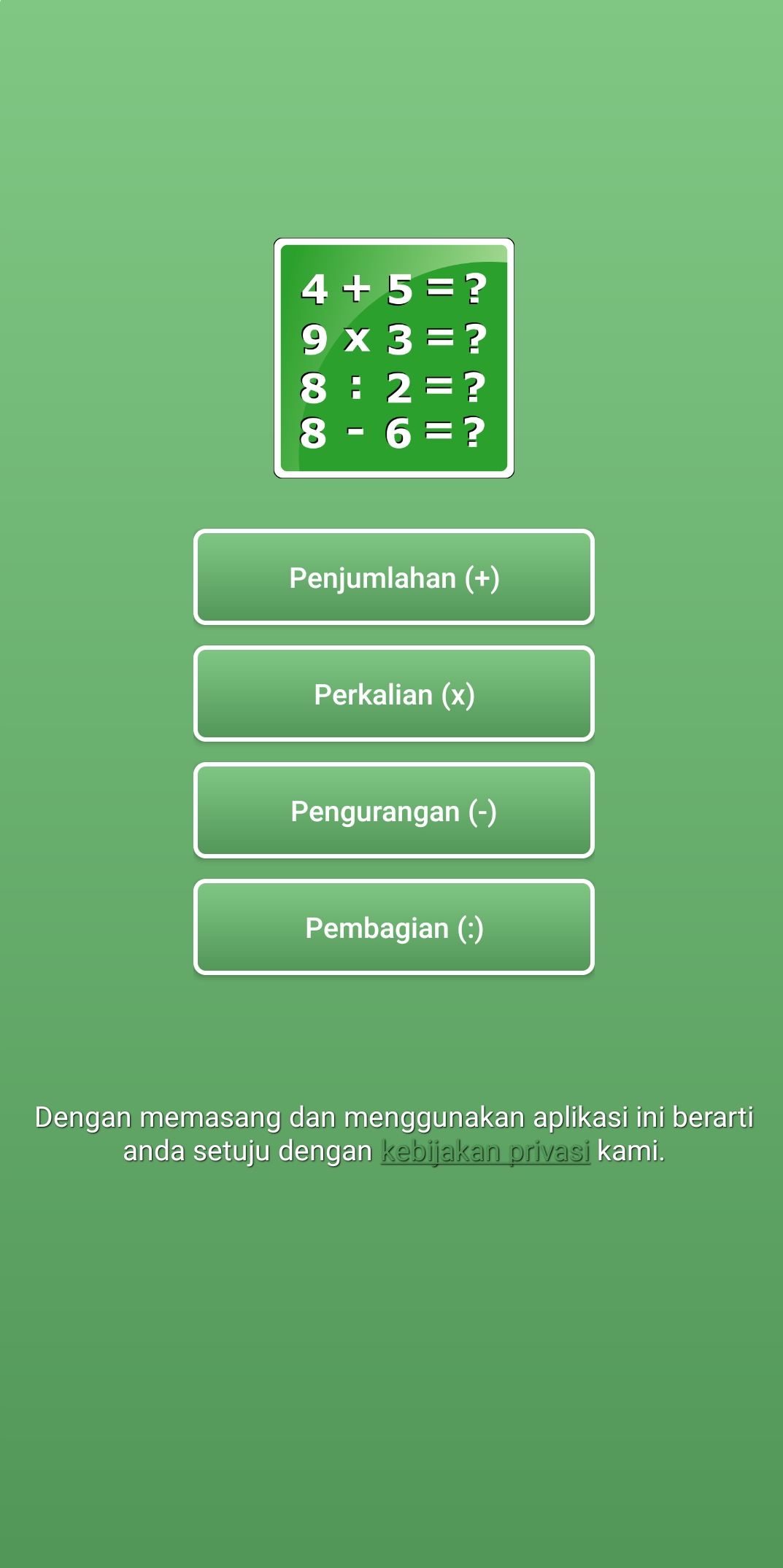 Эта игра очень проста и удобна в использовании, игрокам будут представлены некоторые основные расчетные меню, такие как сложение, умножение и вычитание. в каждой игре игрок должен ответить на 15 вопросов, каждый вопрос представляет собой расчет двух чисел в соответствии с выбранным меню расчета.