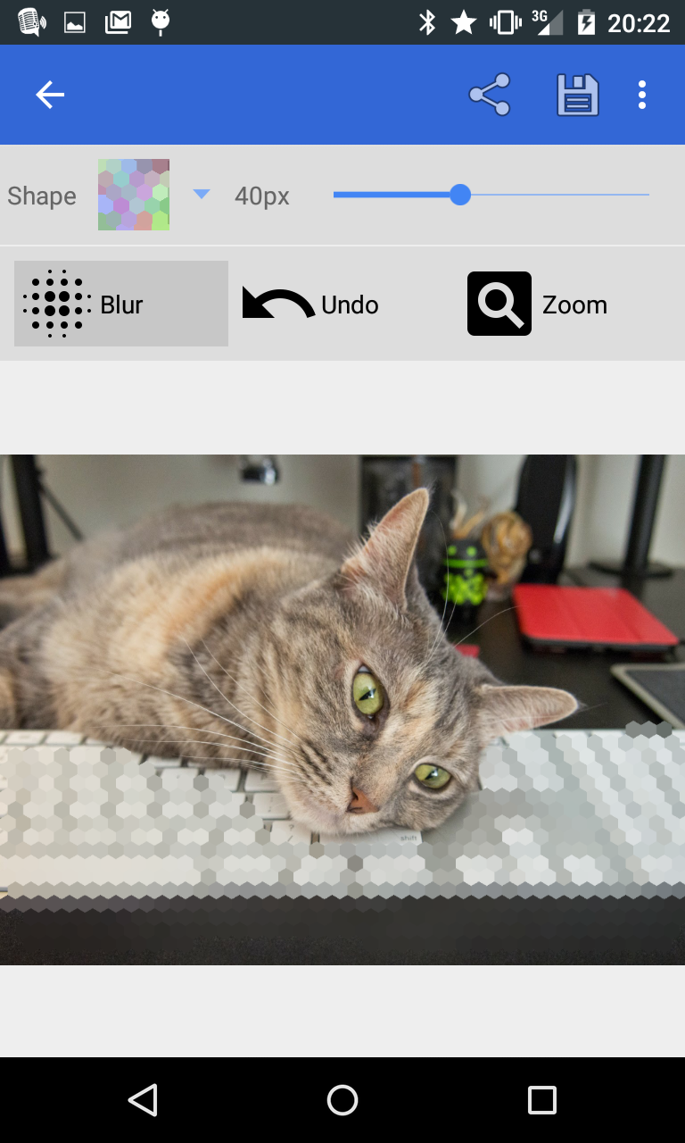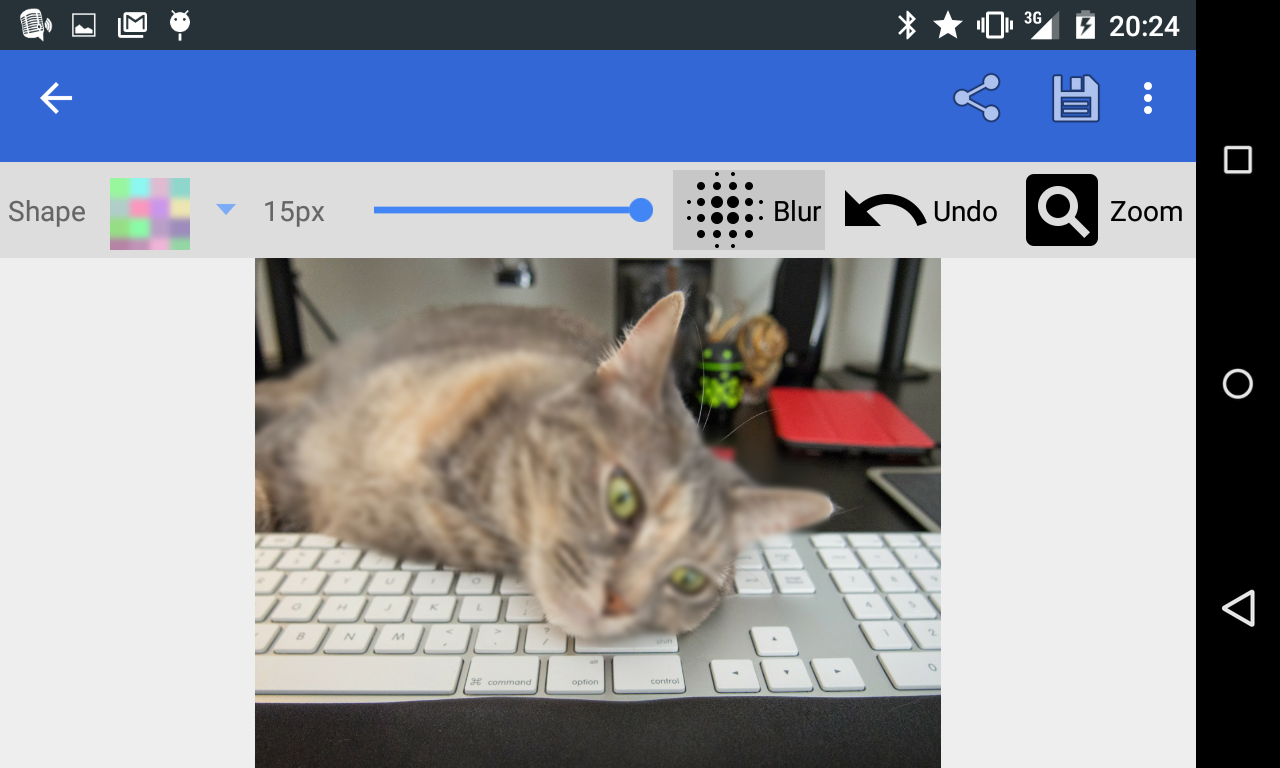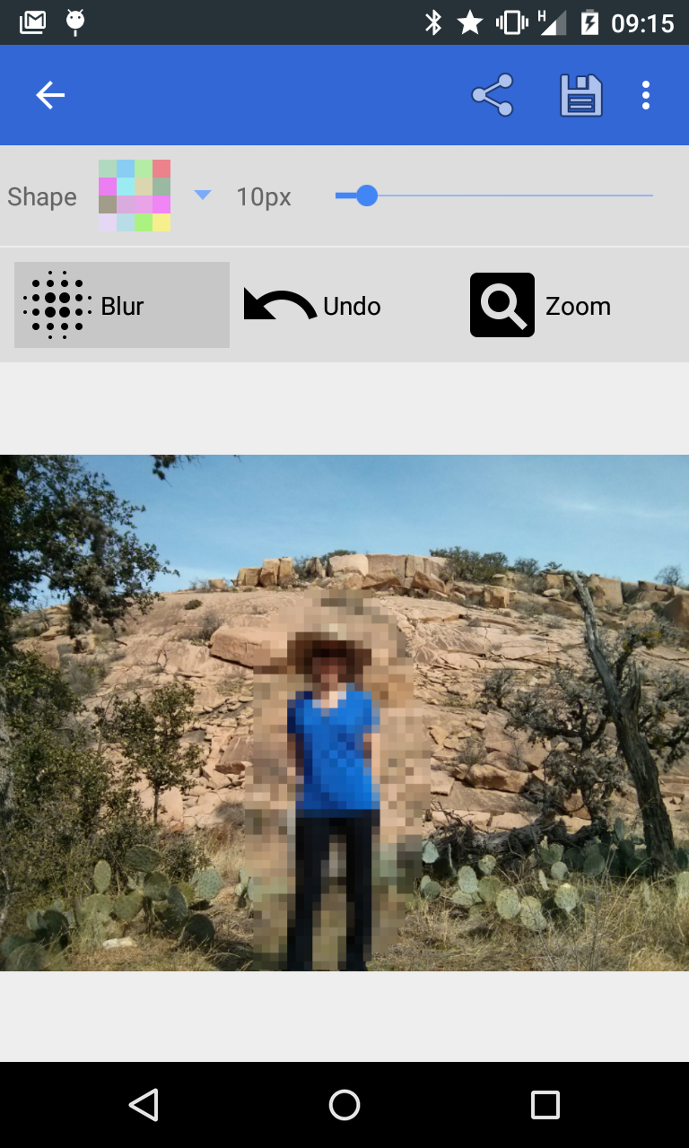 Simply open Pixelot, choose an image from the gallery or take a new picture, and then drag your finger around the region you wish to censor. Alternatively, you can pick a specific color to use in the blur or select a common color from the image using the sample feature. Use this to mask faces, account numbers, signatures, or just use it to do some fun unnecessary censorship.
