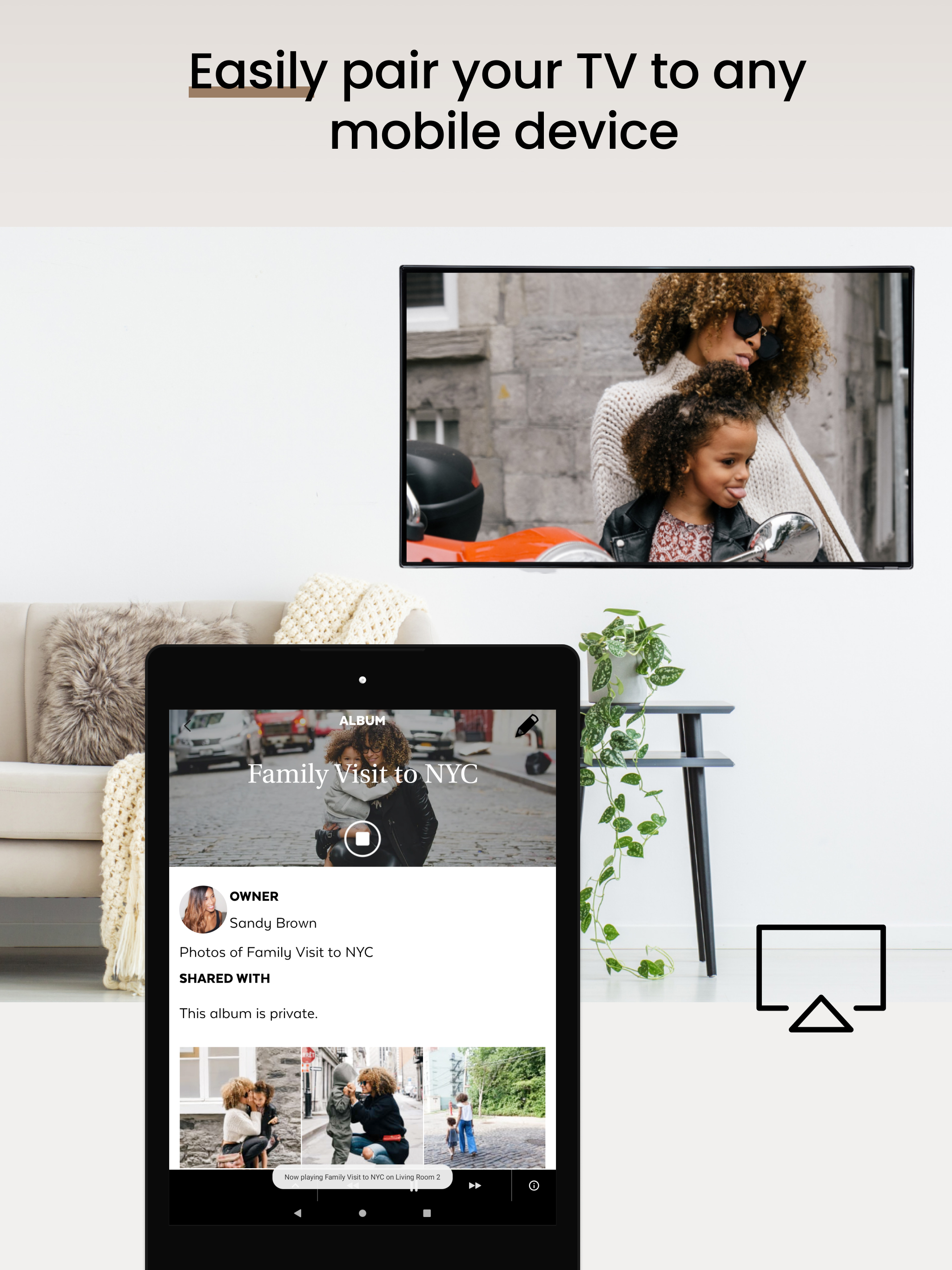 Отображение фотографий на любом телевизоре. Любые визуалы. В любом сценарии. Pixo работает на многих платформах. Платформы включают, помимо прочего, Samsung, LG, Android, iOS, Roku, Firestick и большинство смарт-телевизоров. Вам понадобятся всего два предмета. Любой смартфон и телевизор. Pixo будет работать для всех. Pixo - это новый способ выводить изображения на телеэкраны прямо с телефона или из социальных сетей. ЛЕГКАЯ НАСТРОЙКА 1. Загрузите бесплатное приложение Pixo на свое мобильное устройство. 2. Загрузите бесплатное приложение Pixo TV на любой экран по вашему выбору. 3. Подключите телевизор и получите бесплатную двухнедельную пробную версию. Вот и все - начните отображать изображения, которые вам нравятся больше всего, и смотрите, как они заполняют весь экран! ДЕЛИТЕСЬ КОНФИДЕНЦИАЛЬНО С ДРУЗЬЯМИ И СЕМЬЕЙ ИЛИ СОЗДАВАЙТЕ ОБЩЕСТВЕННЫЕ АЛЬБОМЫ ДЛЯ МИРА -МГНОВЕННО ДЕЛИТЕСЬ ФОТОГРАФИЯМИ. Мгновенно делитесь новыми помолвочными или свадебными фотографиями с близкими друзьями и семьей на их экранах дома. Транслируйте потрясающие фотографии своего последнего концерта десяткам тысяч меломанов по всему миру. - КОНФИДЕНЦИАЛЬНОСТЬ - КЛЮЧ. Фотографии, которыми вы делитесь, являются полностью личными и доступны для просмотра только вам и приглашенному вами другу / члену семьи. Не стесняйтесь делиться семейными альбомами с тем, кому вы выберете. -ПРИГЛАШАЙТЕ ЛЮДЕЙ В СВОЙ АЛЬБОМ. Наслаждайтесь совместной работой над альбомом с друзьями. Независимо от расстояния, вы можете создать альбом, в котором несколько человек будут обмениваться фотографиями, которые могут отображаться на любом количестве телевизоров одновременно. Установите свои собственные настройки конфиденциальности. СДЕЛАНО ДЛЯ СОЗДАТЕЛЕЙ Наконец, Your Pics на телевизорах по всему миру. Заглушите шум и освободите свою ленту, позволяя другим в полной мере насладиться вашими фотографиями и коллекциями визуальных изображений. - ЛЕГКО ЗАГРУЗИТЕ свои фотографии в альбом Pixo и сделайте его общедоступным. Вы сразу же попадете в раздел "Недавно добавленные" доступных для поиска альбомов сообщества. -ПОДЕЛИТЬСЯ ФОТОГРАФИЯМИ СО МИРОМ. Ваша точка зрения уникальна и интересна, так почему бы не поделиться ею с сообществом Pixo. Ваша точка зрения - это чей-то восторг. -ЛЮБИМЫЕ. Смотрите, как ваши фотоальбомы становятся известными, когда участники Pixo добавляют ваши работы в свои избранные альбомы. Ваши визуальные эффекты будут отображаться на телевизорах по всему миру. -КАТЕГОРИЗИРУЙТЕ СВОИ АЛЬБОМЫ. Сделайте свой контент доступным для обнаружения, классифицируя альбомы по ключевым словам. Pixo будет рекомендовать вашу работу участникам, которые ищут контент, похожий на ваш, для отображения на своих телевизорах. -СКРЕАТИВНЫЙ ХАБ. Люди ищут уникальные изображения, чтобы создать настроение в своем доме. Если вас интересуют игры, головоломки, наука или даже винтажные ланч-боксы, в Pixo найдется место для вас. НАСТРОЕНИЕ В ВАШЕМ ДОМЕ -ПИНТЕРЕСТ. Преимущество Pixo - это возможность связать свой Pinterest. Вдохновляйтесь и выставляйте свои пины у себя дома. -ИНСТАГРАММА И FACEBOOK. Получение фотографий напрямую из Instagram и Facebook - это несколько удобных способов, которыми приложение позволяет создавать альбомы и отправлять их своим близким или сообществу. -ДИСПЛЕЙ ИЗОБРАЖЕНИЙ. Pixo - идеальная возможность использовать запасной телевизор или 