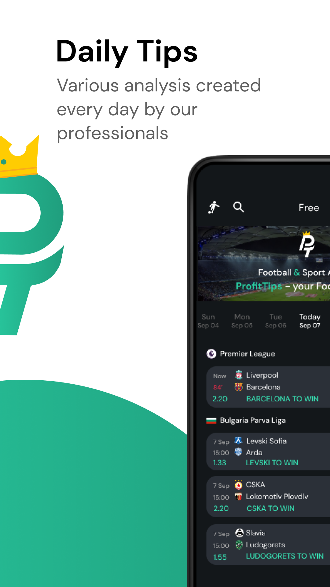 ProfitTips — это консультативный инструмент для футбольного и другого спортивного анализа и прогнозов. Наши типстеры предоставляют бесплатный ежедневный доступ к нашим футбольным полям. В нашем приложении вы сможете бесплатно найти как прямые трансляции, так и дополнительную статистику матчей, которую мы выбрали для дня.