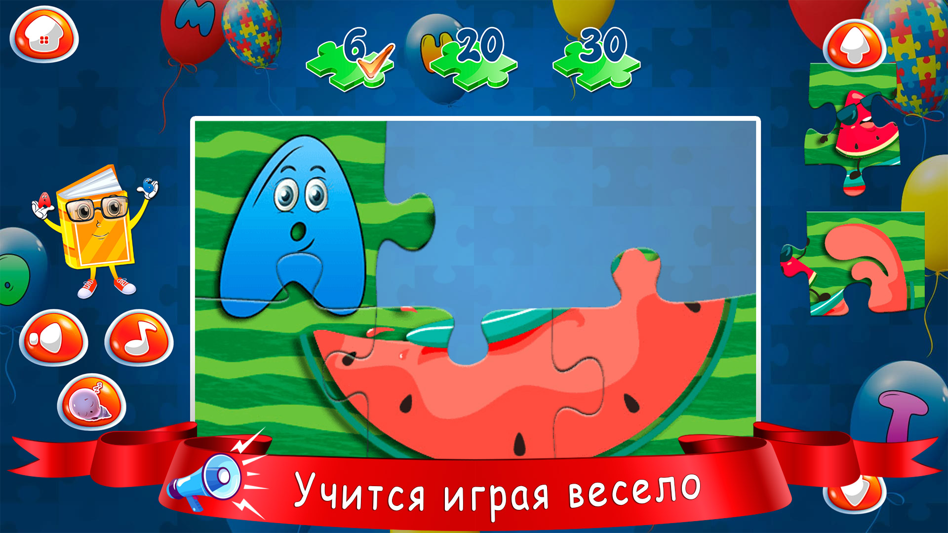 Эти игры головоломки без интернета понравится и взрослым, и детям. А всё потому, что здесь собраны яркие картинки пазлы на каждую букву алфавита. Дети будут в восторге от того, что нужно не только собрать пазл из кусочков изображения, но и угадать что изображено на фоне jigsaw puzzle, а также, что связывает букву алфавита с картинкой на фоне.