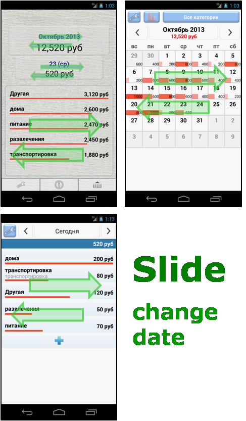 Быстрый, простой и легкий!! Быстрый Менеджер расходов - Q расход --------- Если вы посетите "http://escapps.blogspot.kr/", вы можете увидеть детальное описание. --------- Вы ищете - Легкий анализ расходов? - Простой трекер счет? - Быстрый трекер бюджета? --------- Вы можете сразу увидеть, сколько вы потратили по календарю. Быстрая и простая статья расходов ввода. Это приложение не имеют дохода поля. Просто на расходы. Большинство людей уже знают их бюджет. По этой причине, вы можете использовать это приложение очень легко. --------- Особенности - Быстрый ввод пункта - Календарь (обеспечивать график и цифры) - Всего провел список - Оба календарю и общей сложности провел список может фильтрация по категориям. - Можете сортировать категории (по алфавиту, часто используемые и недавно используемые) - Резервное копирование / восстановление, экспорт в файл электронной таблицы - Slide(Drag) : change month in a calendar, change date in a daily view ====================== Quick, Simple and Easy!!! Quick Expense Manager --------- If you visit "http://escapps.blogspot.kr/ ", you can see the detail description. --------- You can see at a glance how much you have spent through the calendar. Quick and simple expense item entering. This app do not have a income field. Just for expenses. Most people already know their budget. For this reason, you can use this app very easily. --------- Features - Calendar (can know how mush you have spent money by graph and numbers) - Total spent list - Both a calendar and a total spent list can filtering by category. - Can sort category (alphabetically, frequently used and recently used) - Data backup/restore, export to spreadsheet(like Excel) file - Slide(Drag) : change month in a calendar, change date in a daily view