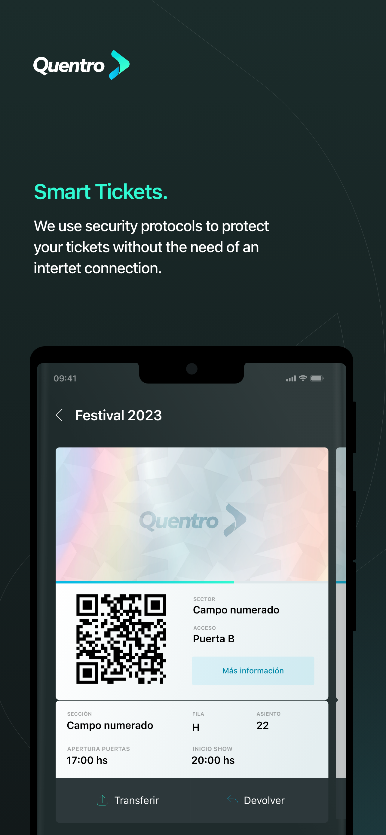 Quentro позволяет управлять электронными билетами, цифровыми идентификаторами и бронированием простым и безопасным способом. Храните свои электронные билеты, цифровые удостоверения личности и бронирования в Quentro и показывайте их из приложения, когда вам нужно их использовать. QR-коды Quentro обновляются каждые 15 секунд для защиты вашей информации: снимки экрана и распечатки становятся недействительными. Вы можете использовать свои электронные билеты, показать свои идентификаторы и получить доступ к бронированию, даже если у вас нет подключения в данный момент.
