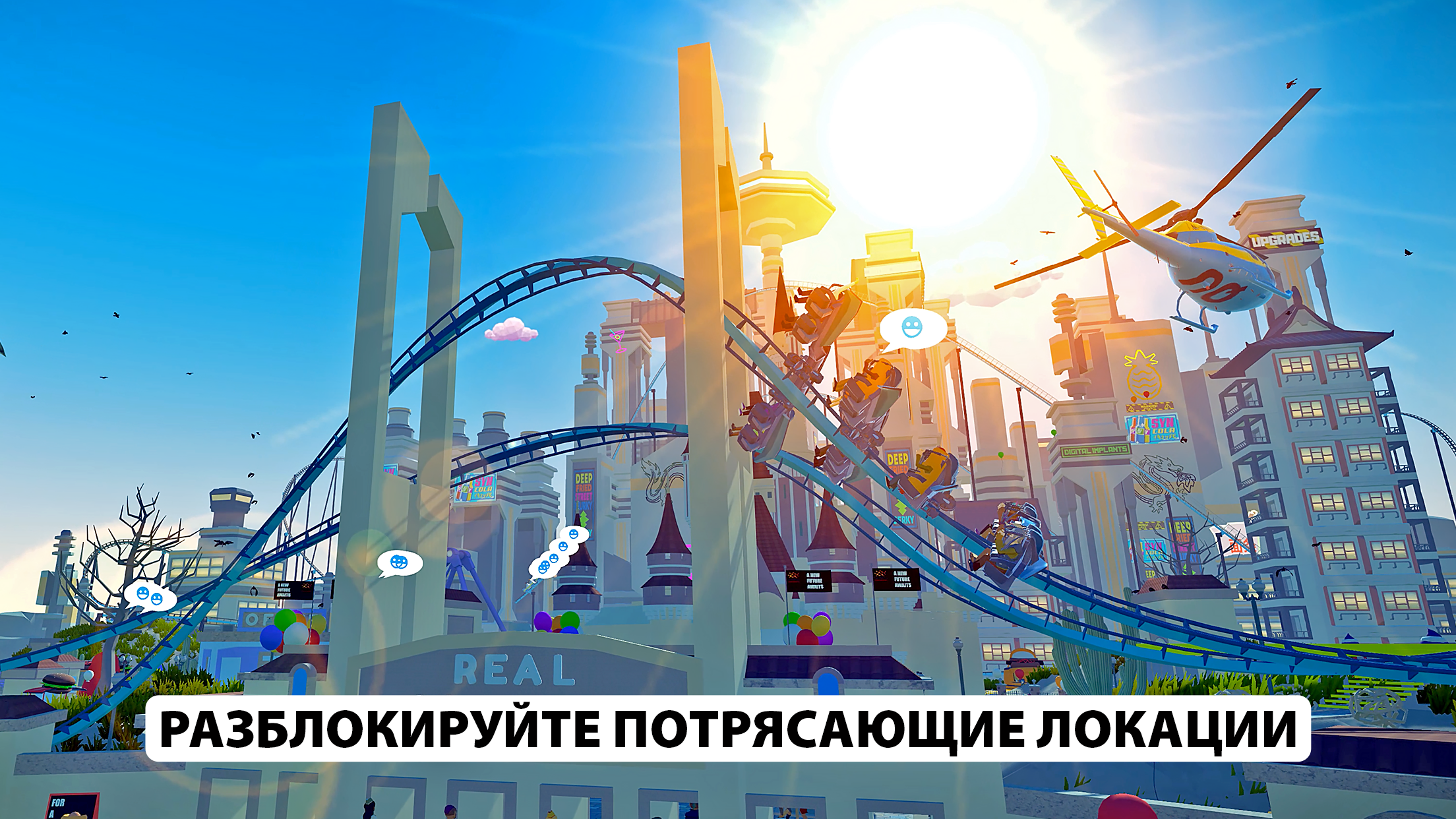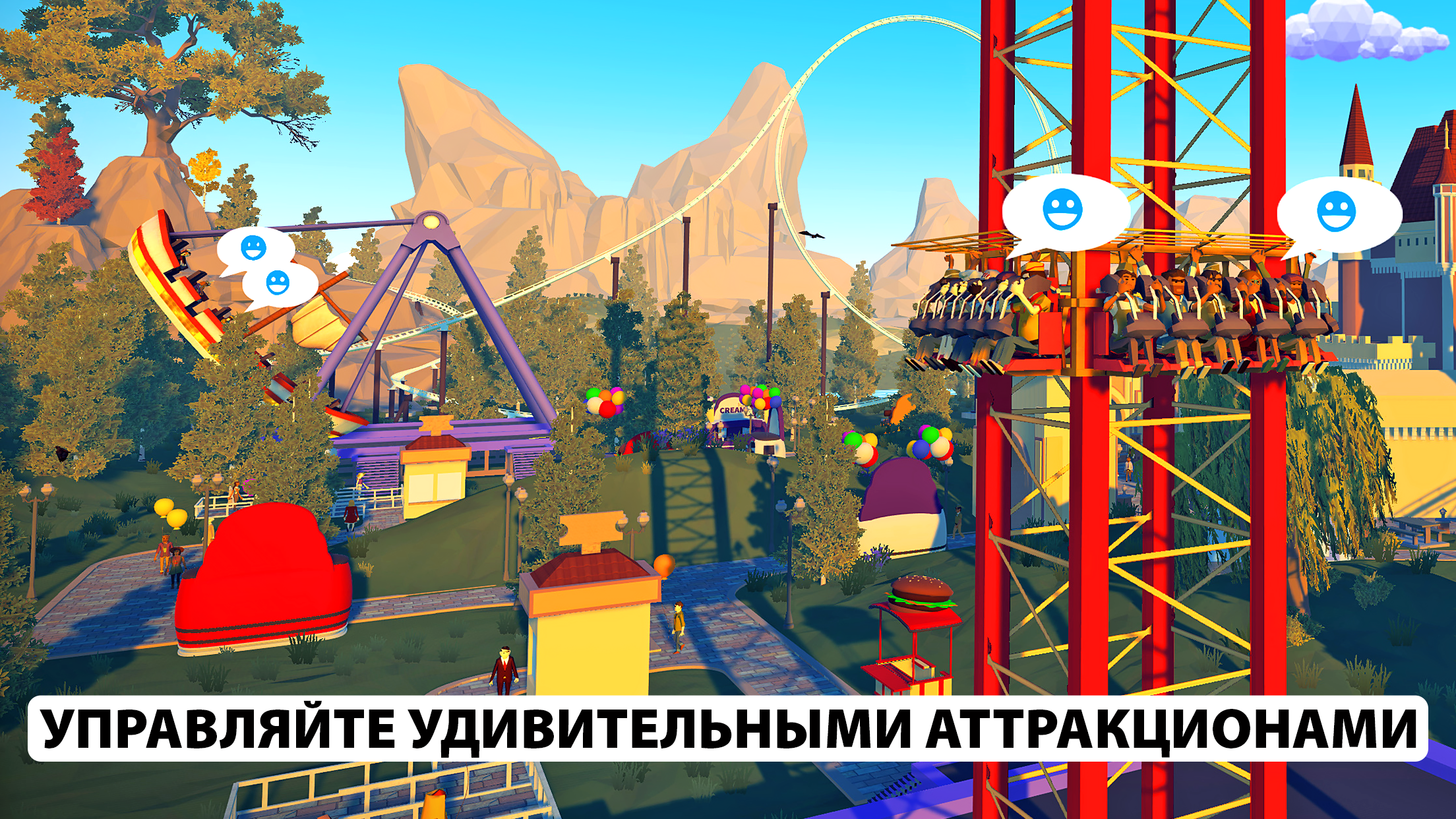 Постройте гигантские американские горки, потрясающие колеса парома, крутые водные горки и многие другие аттракционы для вашего парка развлечений. Управляйте самой большой в мире империей тематических парков, получая удовольствие от катания на всех аттракционах от первого лица.