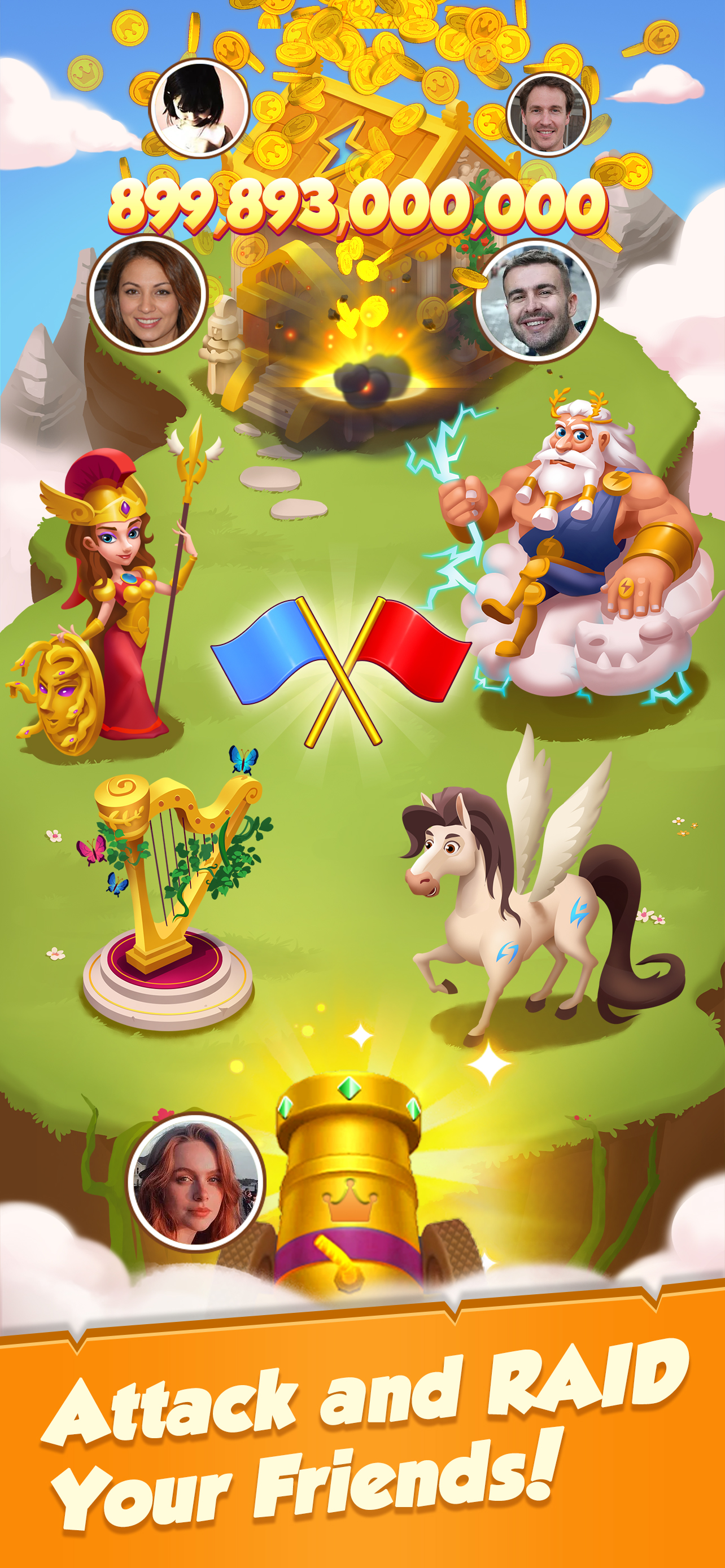 Нападайте на королевства своих друзей на Facebook и без колебаний забирайте у них монеты, и вы никогда не знаете, какие сокровища вы можете найти в других королевствах.