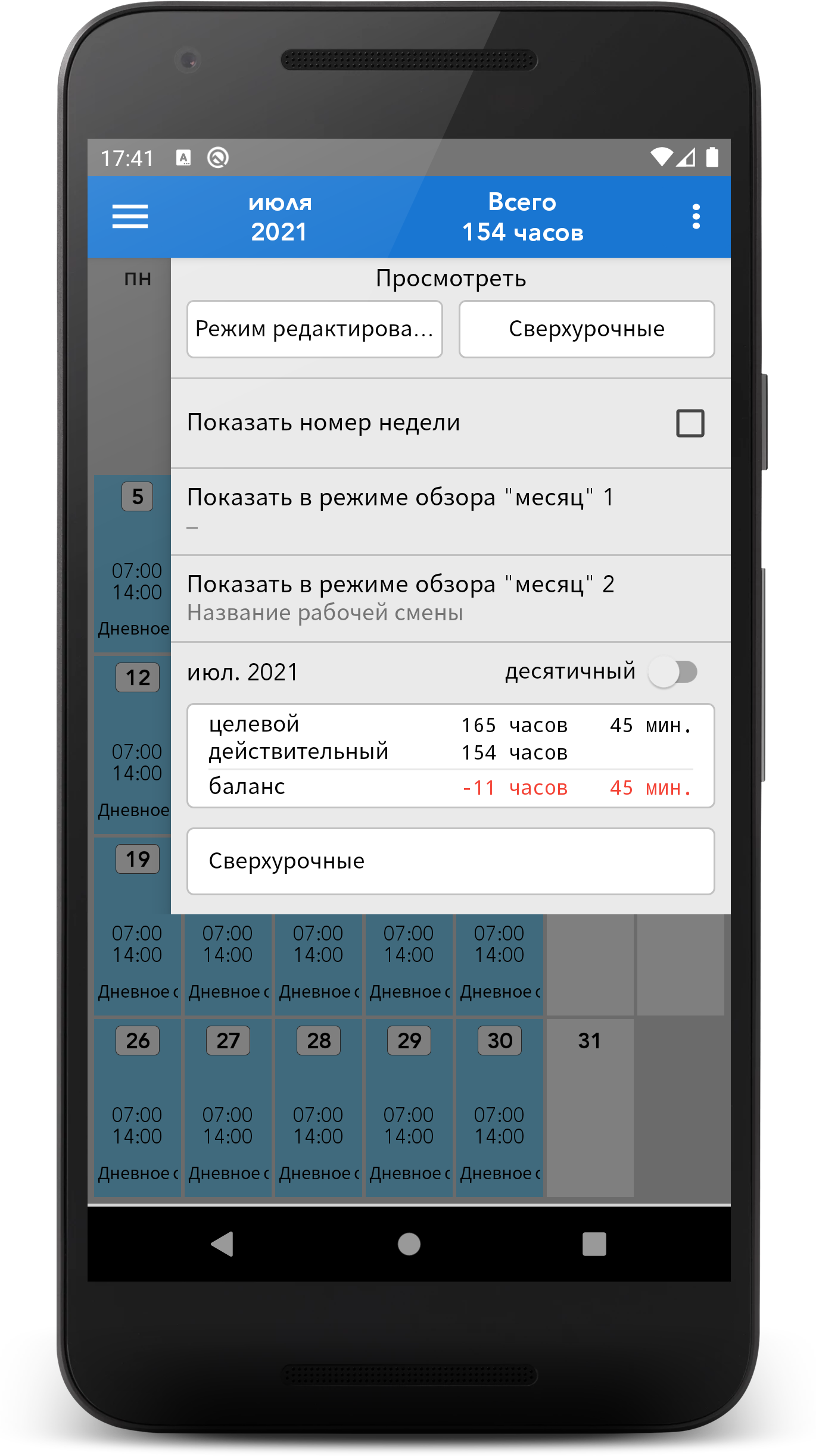 Megashift - План сменности