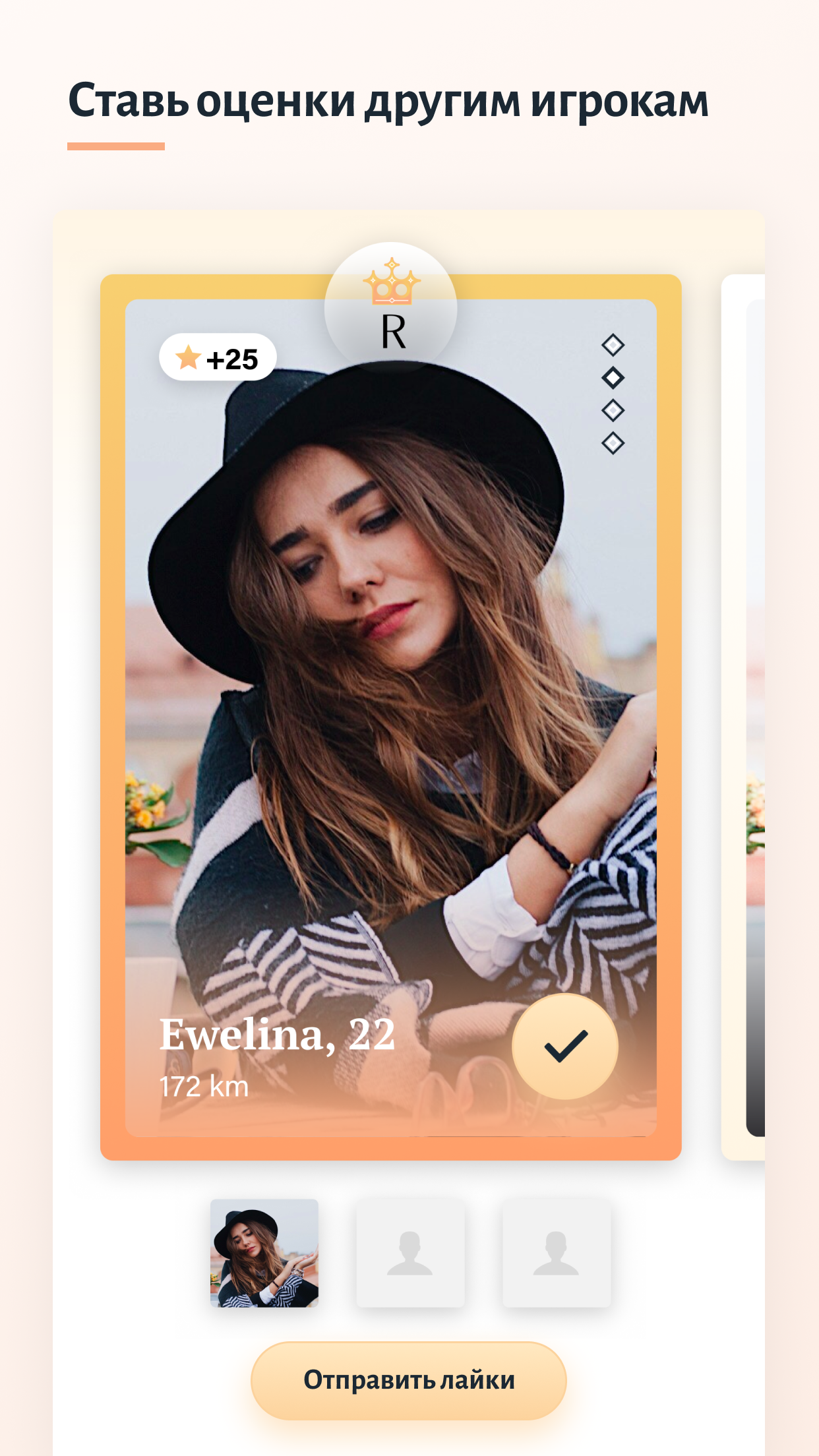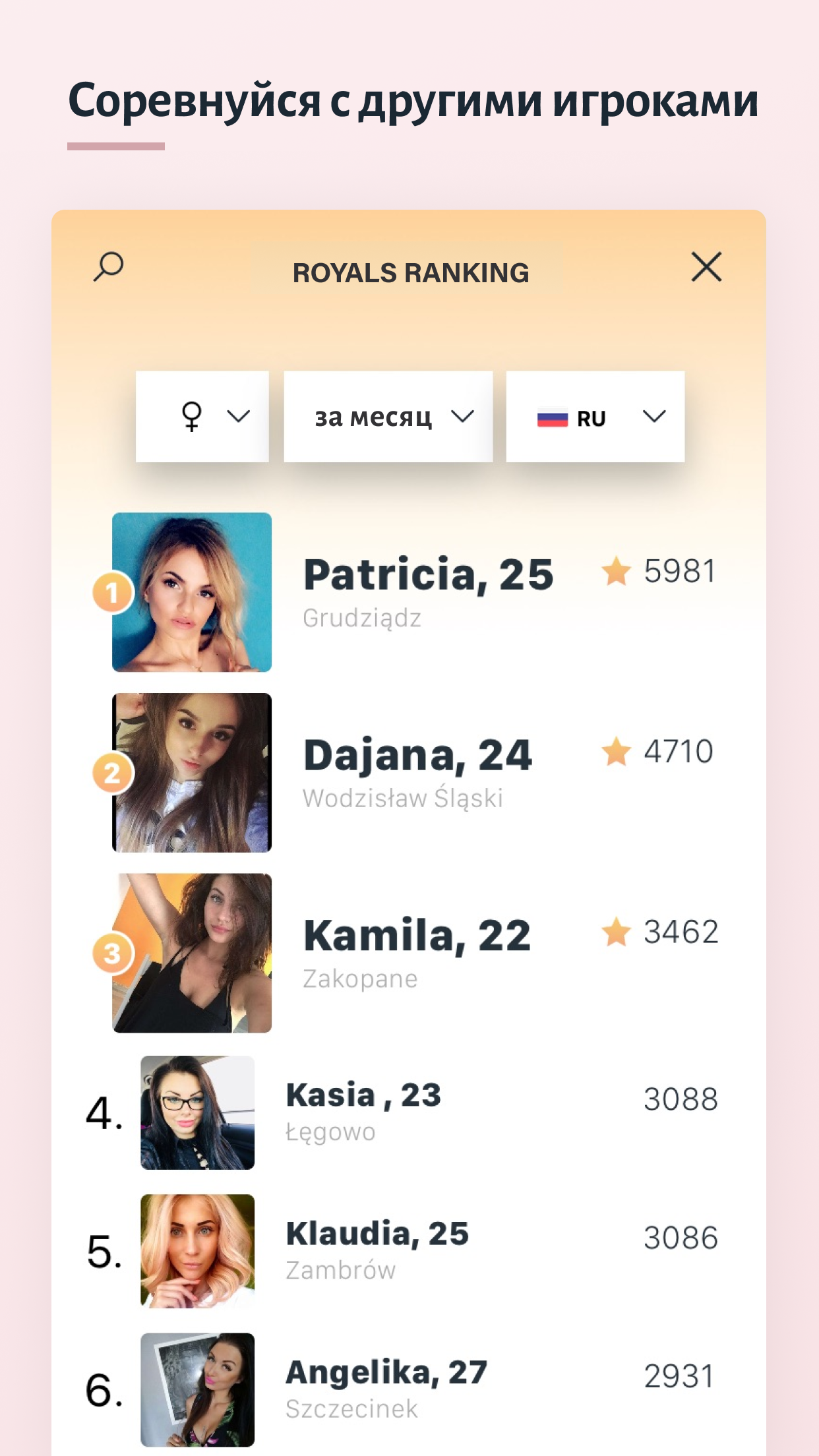 👑 Royals App - это больше, чем просто люди, знакомства, флирт или общение в чате. Это первая игра в мире, в которой 2% лучших пользователей создают закрытое элитное сообщество. Матч, чат, флирт и свидание с потрясающими мужчинами или женщинами по всему миру! КАК РАБОТАЕТ ROYALS APP? ✔️ Оценивай других игроков Открывай коллекции с профилями других людей, оценивай и дари им баллы популярности. Знакомства и набор баллов, которые дают тебе возможность встретить игроков на твоём уровне, ещё никогда не были такими увлекательными! Это бесплатная социальная игра 👑 Royals App даёт возможность встретиться с популярными людьми из шоу-бизнеса, знаменитостями и моделями. 🌟 Зарабатывай баллы Твой профиль также оценивают другие игроки. Чем больше у тебя баллов, тем выше твой уровень. Ты получаешь баллы популярности, отмеченные знаком звезды, когда кто-то выбирает тебя из коллекции, когда ты знакомишься с новыми людьми или когда ты открываешь новую коллекцию (помни, что за специальную коллекцию ты получишь больше баллов!). 😍 Расширяй свой круг общения Подключи свои соцсети к приложению и увеличь число своих подписчиков. На топ игроков Royals всегда подписываются новые подписчики. Присоединись к онлайн элите и стань звездой! 🏆 Борись за высокое место в рейтинге С седьмого уровня игры ты попадёшь в рейтинг, где будешь соревноваться с другими лучшими игроками. Благодаря приложению 👑 Royals у тебя есть шанс обрести успех! Горячее фото - это не всё, в игре самые главное - баллы. Чем больше их у тебя, тем выше твой рейтинг. Проверь, действительно ли ты лучше всех! 🔥 Отправляй сообщения Ты можешь подружиться с выбранными игроками и общаться с ними в чате, флиртовать или отправлять им фотографии. Также ты найдёшь забавные подсказки, как начать разговор ! Хочешь повеселиться? Отправь уникальный подарок или договорись о встрече. Кто знает, может это твоя следующая любовь? 👑 Присоединяйся к элите Как только ты достигнешь самого высокого уровня Royals, ты присоединишься к закрытому сообществу 2% лучших игроков. Хочешь стать VIP? Присоединись к кругу топ игроков и закрепи свою позицию в рейтинге. Royals App – это новые знакомства, сумасшедшие вечеринки, развлечения! А может быть, интересный чат, флирт, и... настоящая любовь? Проверь, что игра принесет тебе! ---------- Скачать 👑 Royals App -> ✅ Матч мужчин или женщин -> 💋Часть и отправить фотографии -> 🏆❤️ Выиграть рейтинг, любить и вступать в элиту ---------- *#JoinTheElite *#RoyalsApp