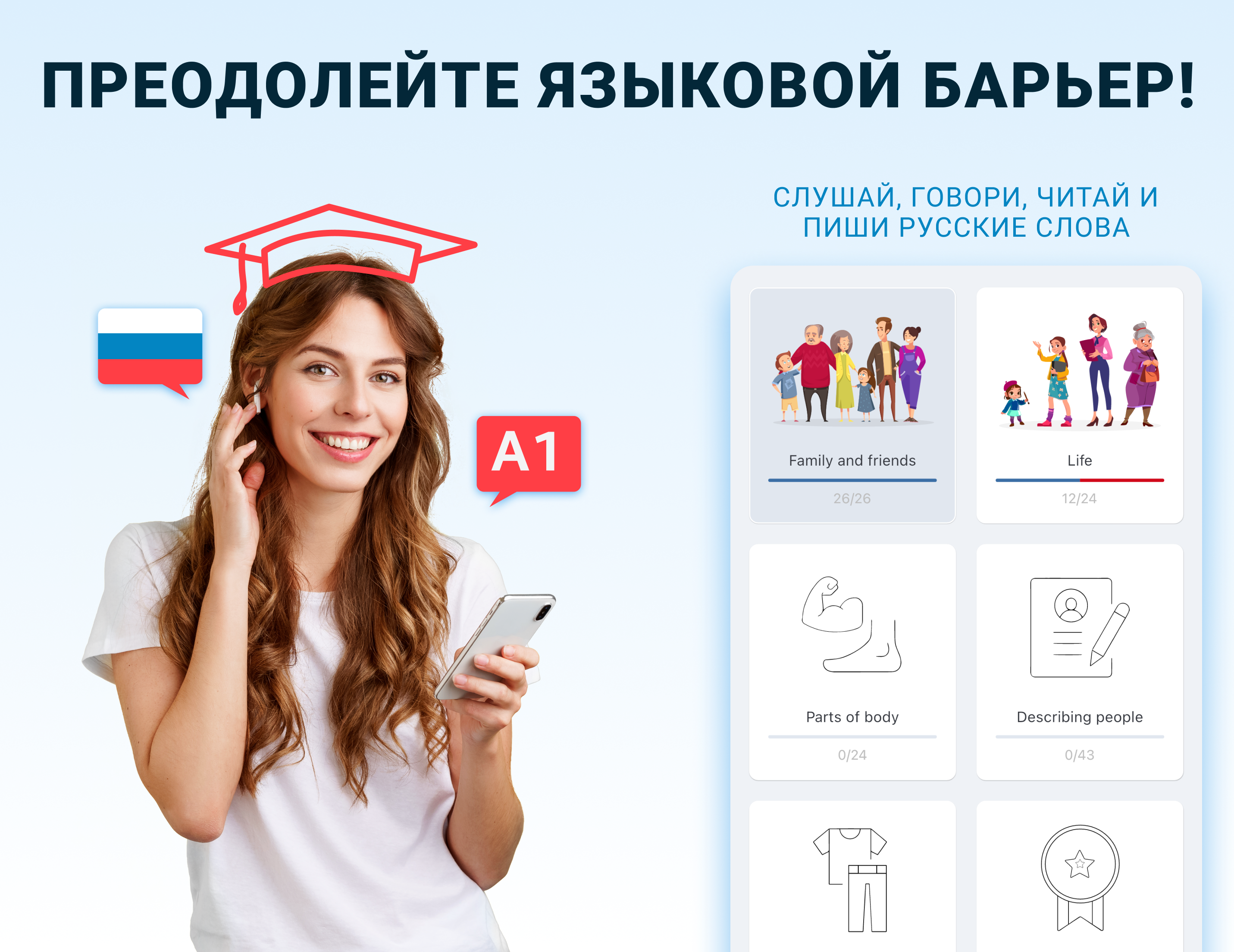 Изучайте русские слова в приложении Русский для начинающих. Изучение русского языка еще никогда не было таким легким!