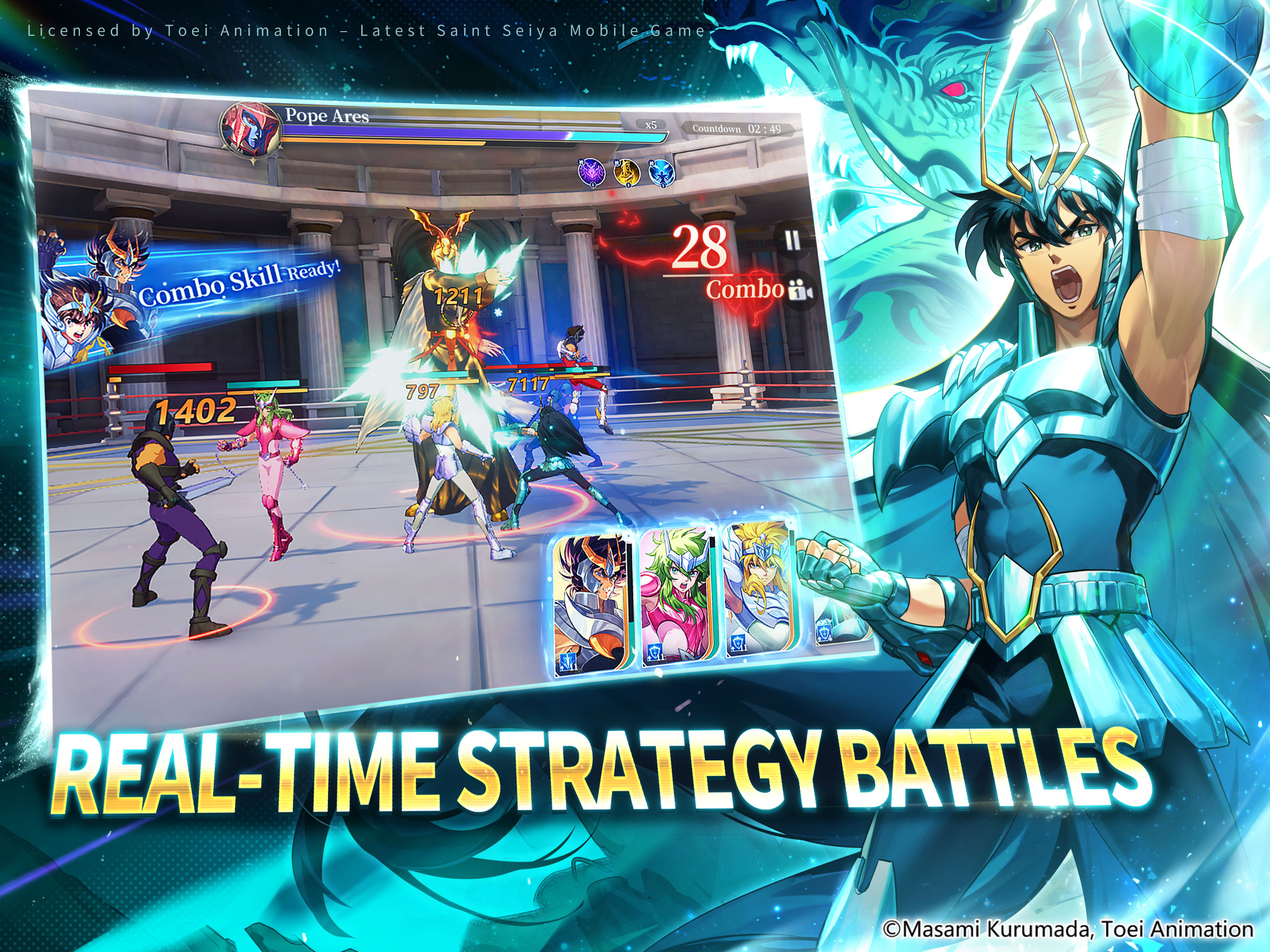 Saint Seiya EX - Official, официально лицензированная Toei Animation, представляет собой 3D-ремейд стратегической карточной игры. Благодаря 3D-графике, выполненной в компьютерном качестве, игра стремится максимально точно воссоздать аудиовизуальный опыт аниме и оживить мир Святилища. Каждый персонаж может эволюционировать в ССР: каждый может раскрыть силу Космо! Теперь начните свой путь, чтобы защитить Афину, снова соберите команду, наденьте Ткань, возродите легенду и сформируйте совершенно новую команду Святых, чтобы победить в Войне Святилища! 【Официально лицензированный – Яркий 3D-мир Святилища】 С разрешения Toei Animation игра воссоздает оригинальный сюжет, персонажей и боевые эффекты с помощью 3D-моделей, создавая незабываемые визуальные впечатления! Более 40 классических персонажей, включая Пятерых Бронзовых Святых, Золотых Святых и Афину, воссоединяются здесь. Присоединяйтесь к ним и переживите легендарные битвы, такие как Турнир Галактических войн, Двенадцать Храмов и Башня Призраков. Начните свой путь с новыми впечатлениями и новыми впечатлениями в Святилище! 【Откройте Восьмое Чувство — все персонажи ранга R могут стать ССР】 Независимо от того, какого ранга ваши Святые — Бронзового или Серебряного, — они могут раскрыть истинную сущность Космо и достичь Восьмого Чувства. Все персонажи могут достичь ССР! Хотите стать непобедимыми в Святилище? Тренируйте любимых Святых и превращайте их в своих сильнейших союзников! 【Гибкое развитие — система передачи ресурсов】 Система развития персонажей соответствует лору аниме. С Тканью под защитой Афины, системой Космо, абсолютной силой, создающей вселенную, и новым реликтом вы сможете раскрыть свой полный потенциал! Вы также можете использовать функцию передачи ресурсов, чтобы развивать персонажей без потерь одним нажатием: создание команды теперь стало более эффективным и комфортным! 【Стратегические комбо — совершенно новый тактический геймплей в реальном времени】 Расположение и комбинации персонажей влияют на результаты боя. Раскройте свой стратегический потенциал, чтобы победить сильных противников! Вы можете сформировать команду, пройти основной сюжет и пройти путь Святых, или бросить вызов Двенадцати Храмам, опробовав всех персонажей. Лучший состав команды зависит от вашего выбора! 【Saint War Reignites — Классические приёмы в CG-графике】 Игра точно следует оригинальной анимации, возвращая такие культовые приёмы, как «Метеоритный кулак Пегаса» и «Взрыв галактики». Также в игре представлены захватывающие комбо-атаки, такие как «Восклицание Афины». Вы можете выбирать между режимами PvE и PvP и наслаждаться напряжёнными сражениями, нажимая на главный приём! Переживите классические бои из оригинальной серии в Saint Seiya EX — официально! 【Вспомните классику – Оригинальная озвучка аниме】 Такие артисты, как Масакадзу Морита, Такахиро Сакурай и Кацуюки Кониси, возвращаются, чтобы оживить персонажей! Также включены классические саундтреки, такие как «Pegasus Fantasy», «Globe» и «Blue Forever» – благодаря силе звука вы сможете полностью погрузиться в мир Saint Seiya!