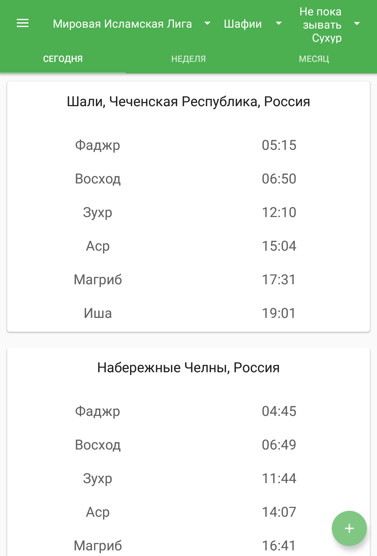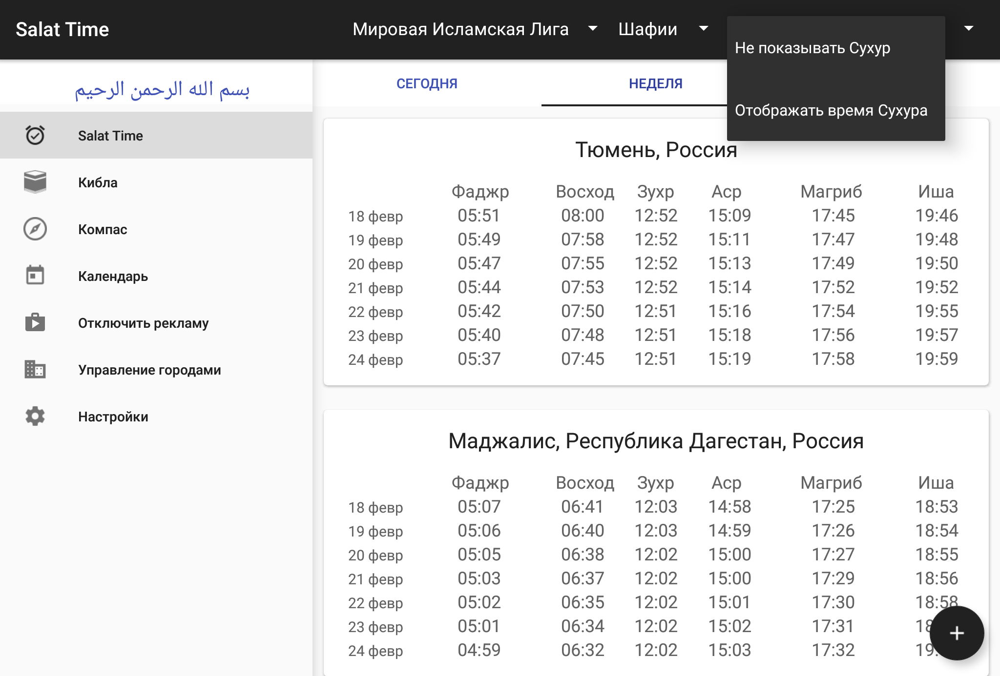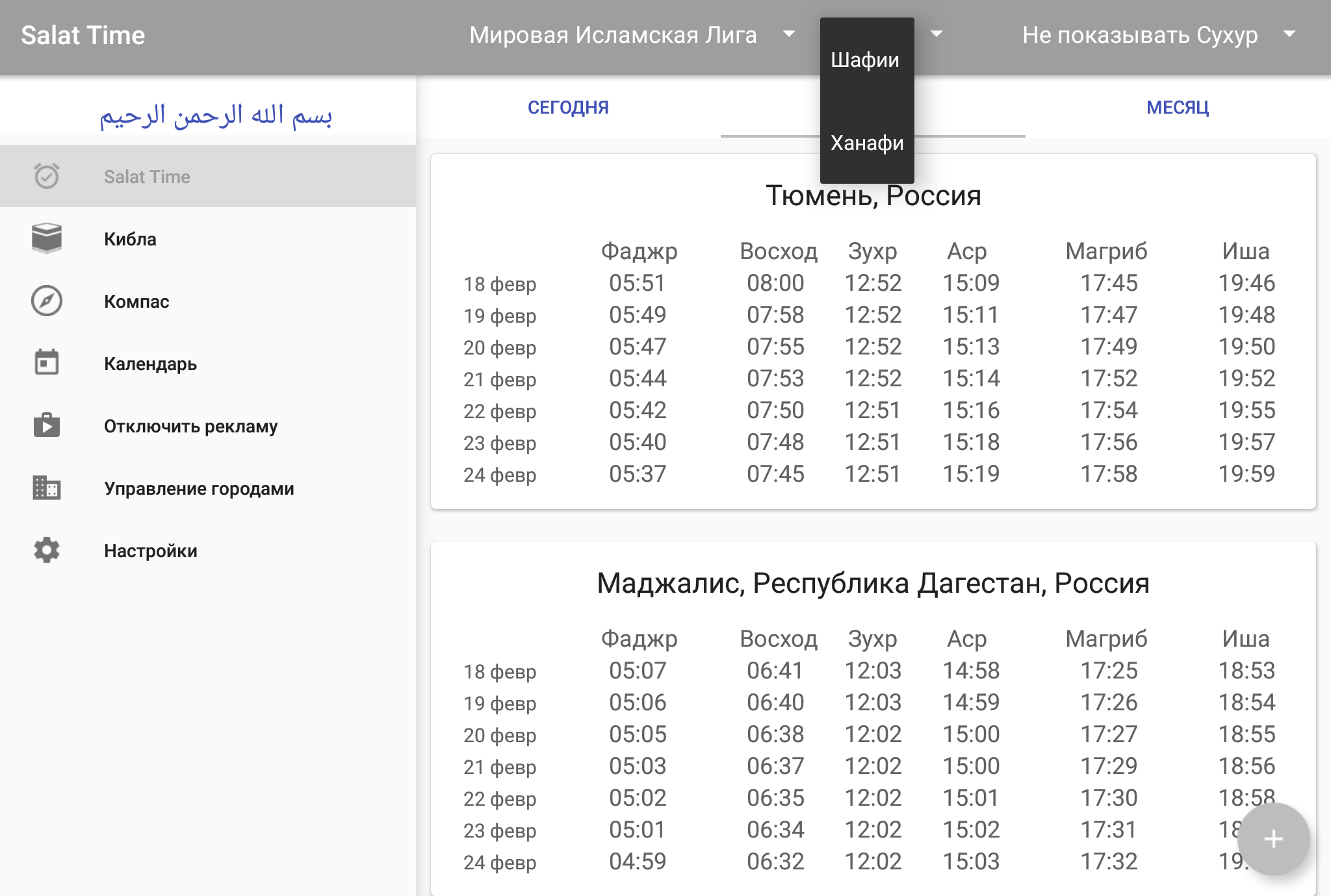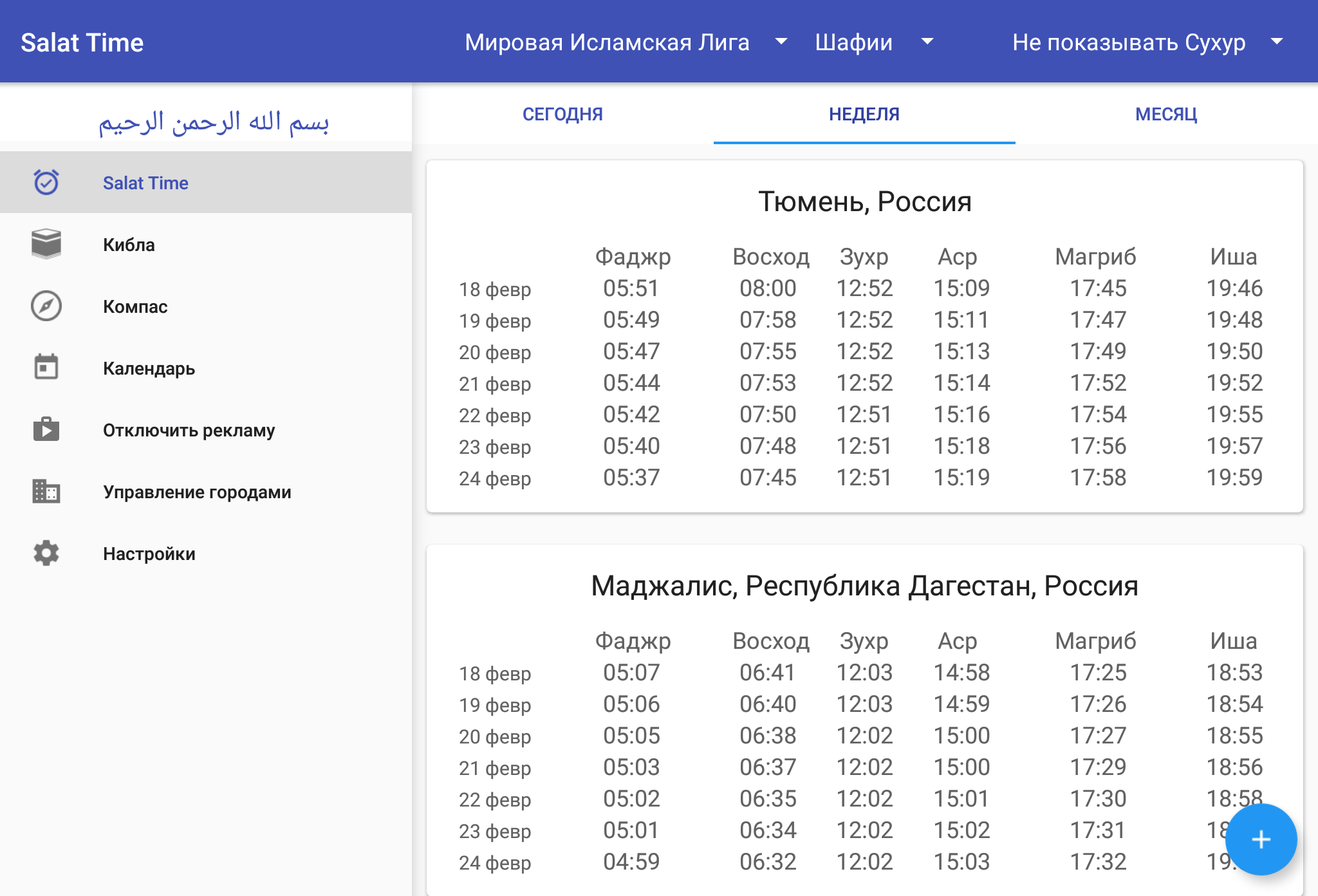 Время намаза(салят)