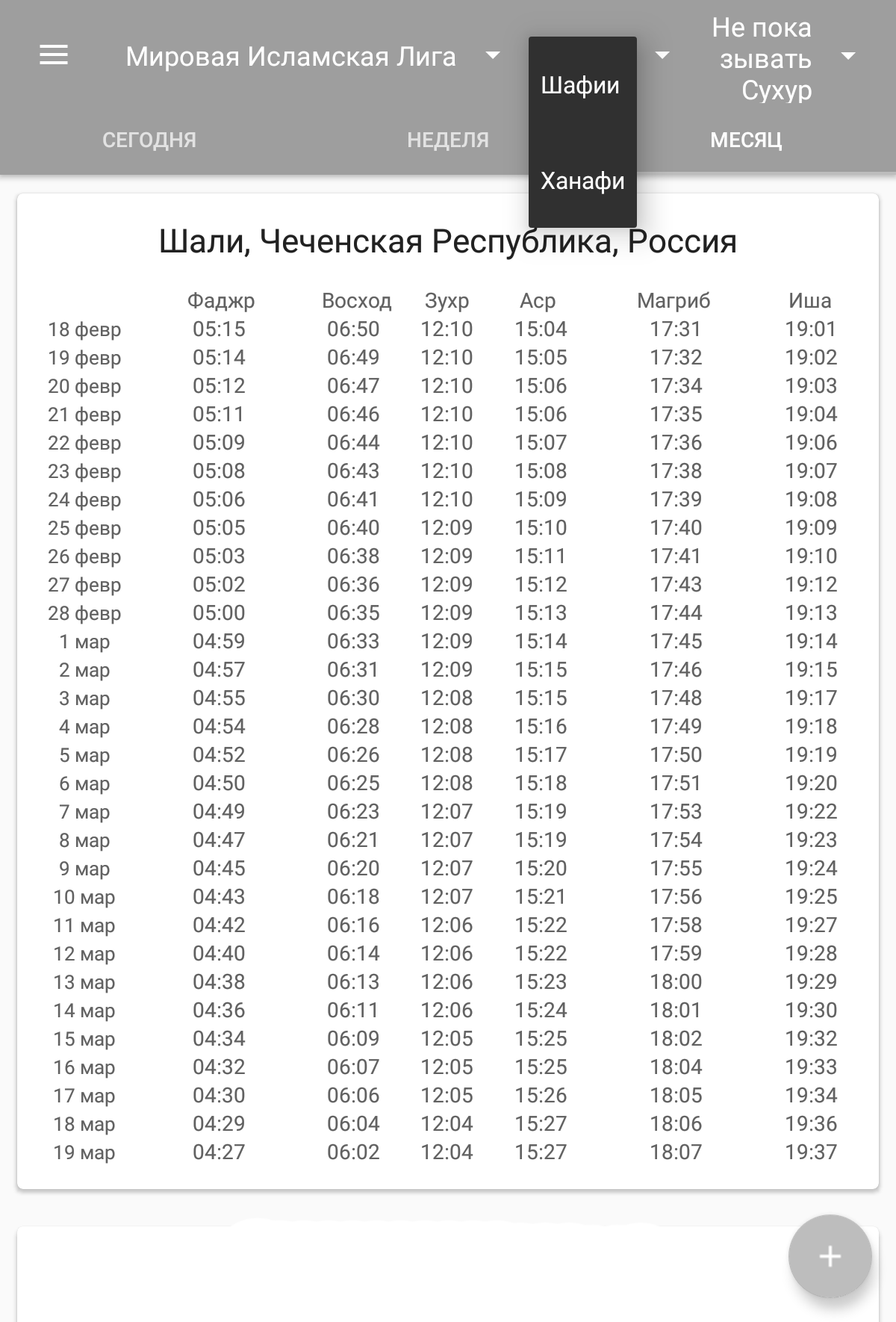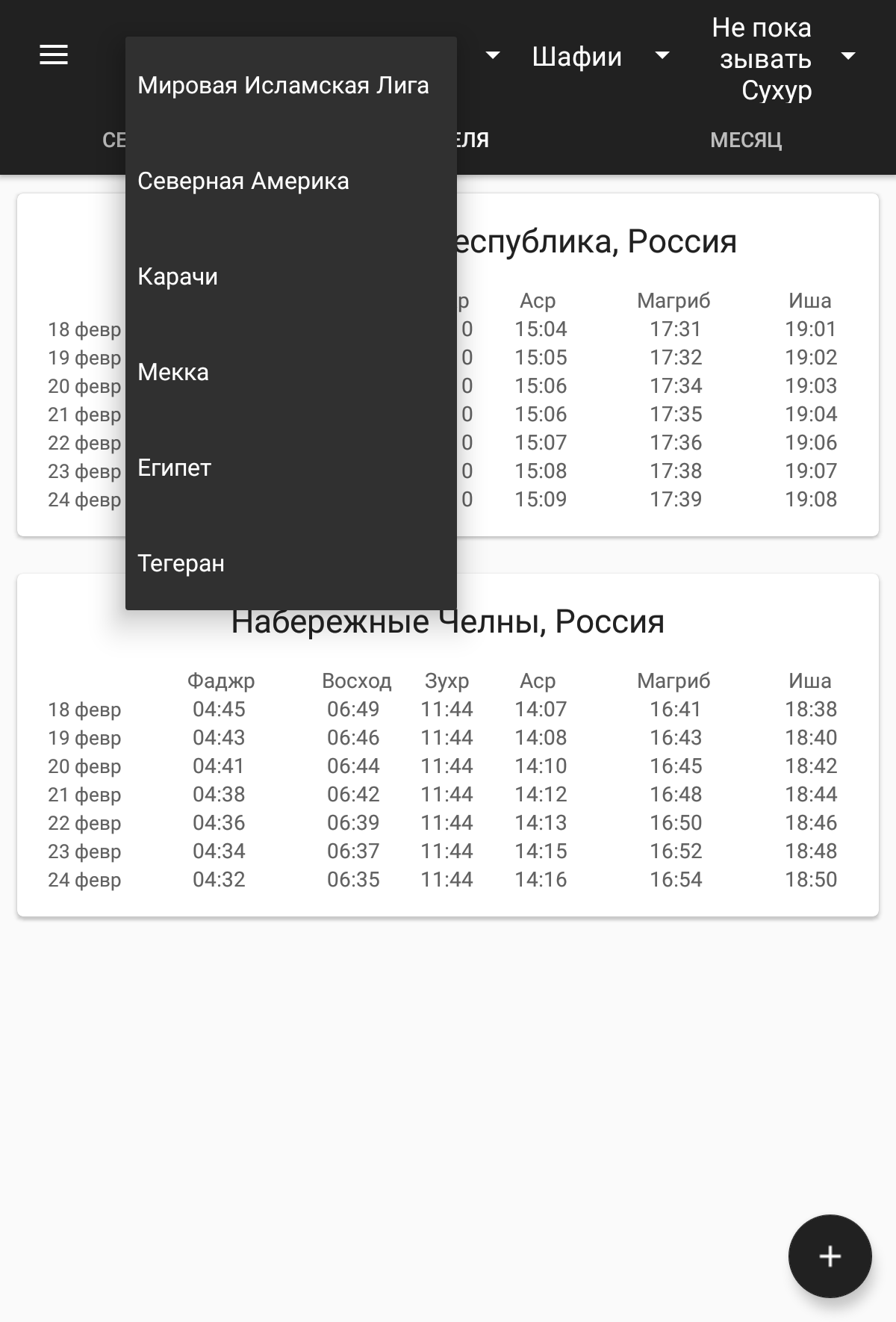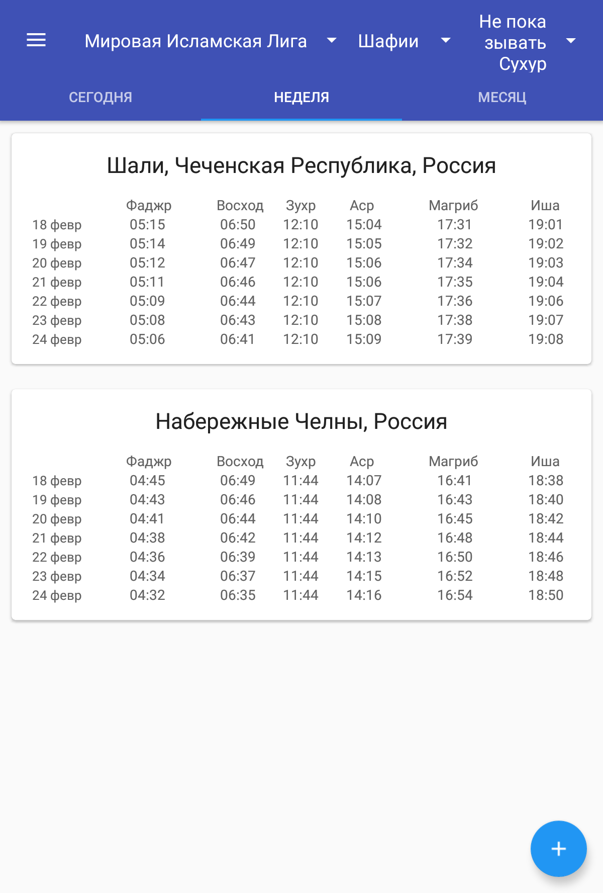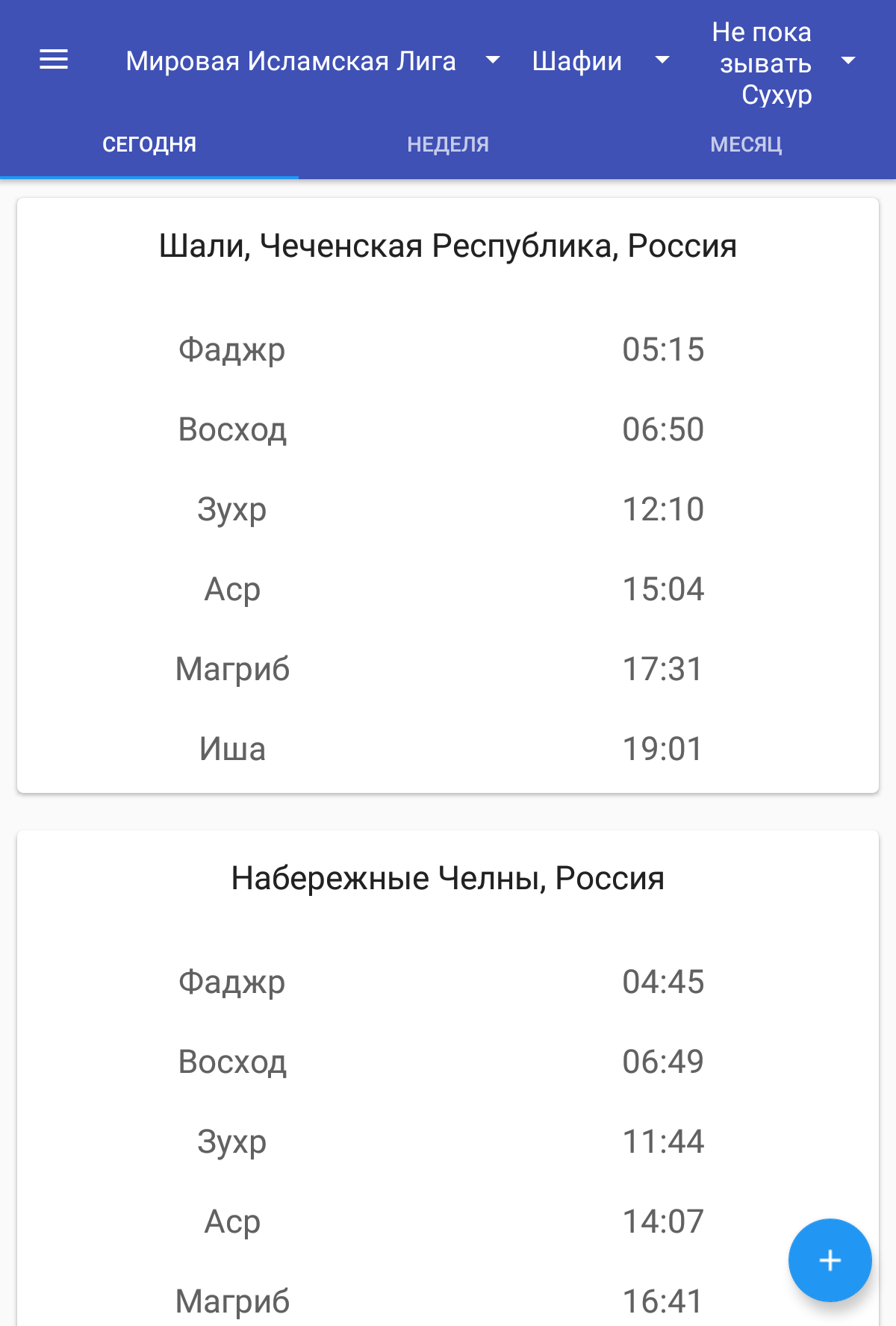 Время намаза(салят)