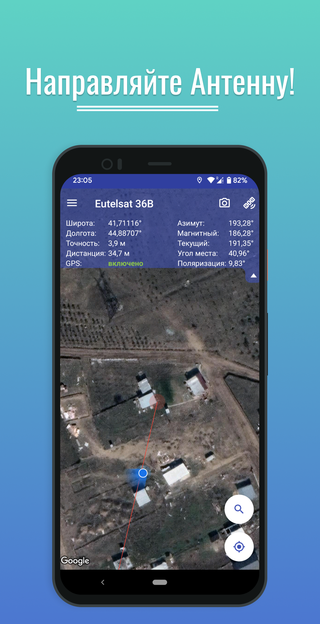 Не надейтесь на компас, он грешит погрешностью!☝ Данное приложение опирается в работе не на компас, а на возможность создать высокоточный ориентир на местности и навести тарелку на спутник при помощи GPS.Помимо этого у вас будут следующие возможности:- 2 режима работы: с включенным GPS и без него (режим без GPS позволяет “удаленно” оценить наличие потенциальных преград для приема сигнала в любой точке мира по спутниковым снимкам, заблаговременно перед установкой; В режиме GPS-ВКЛ проводится непосредственно наведение тарелки);