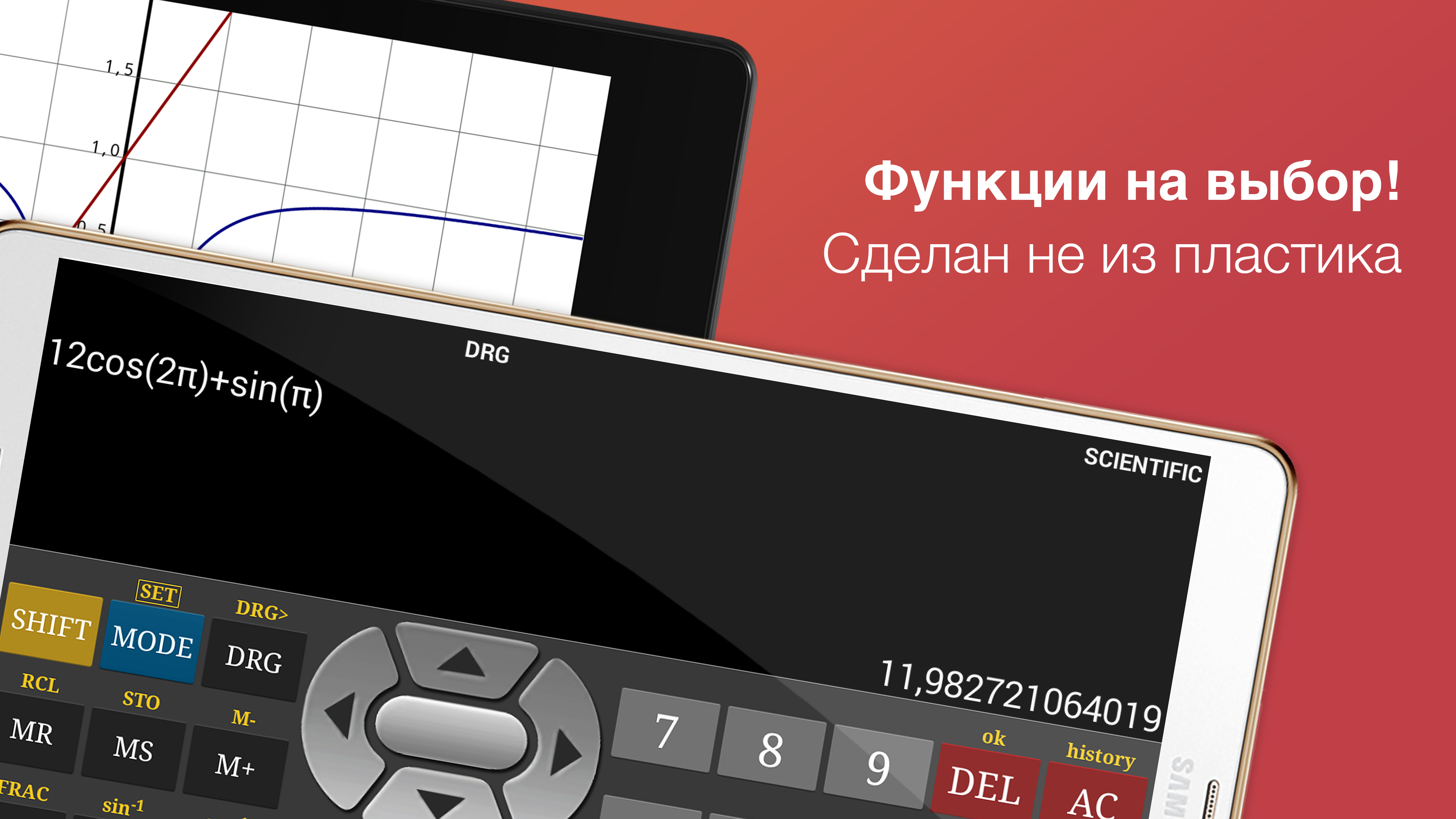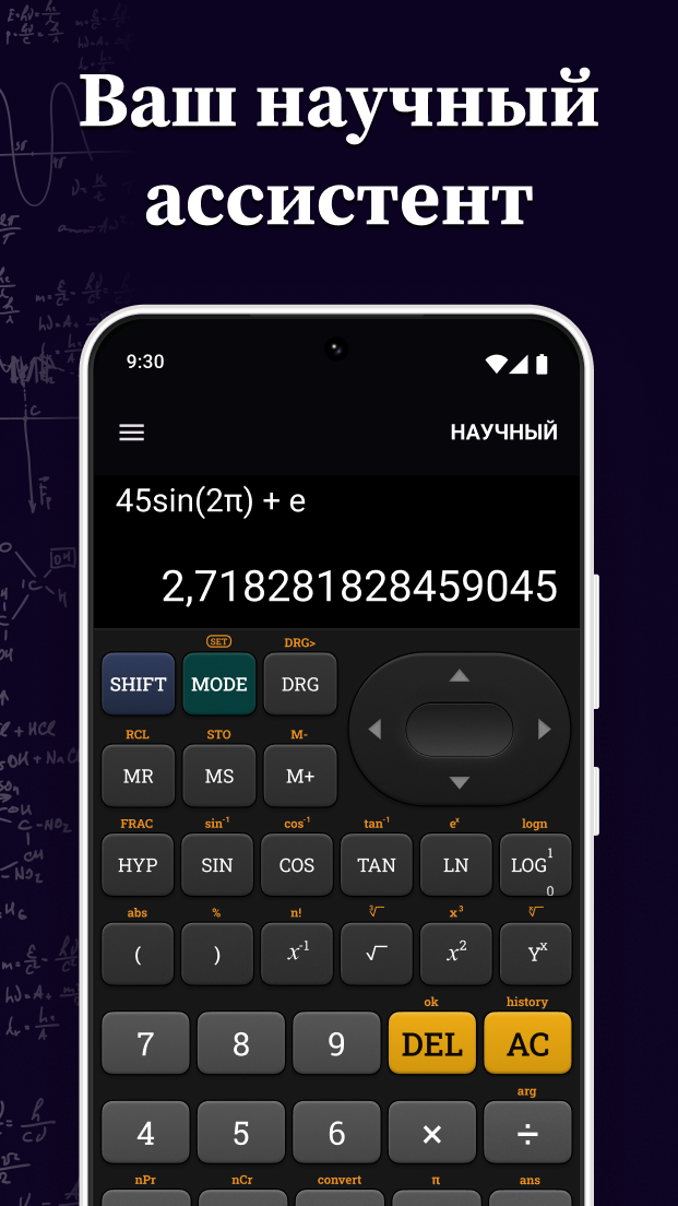 "Необходимая вещь для студента" - informED Преврати свой телефон в наилучший инженерный калькулятор, который ты когда-либо использовал. Базовый, продвинутый и графический режимы дают тебе возможность использовать то, что тебе нужно тогда, когда тебе нужно. Он быстрый, простой в использовании и выглядит как настоящий. Этот калькулятор всегда будет под рукой, когда тебе это необходимо. Особенности: - Цветные графики - Работает в горизонтальном и вертикальном режимах - Тригонометрические функции, логарифмы и экспоненты - Вычисления с дробями - Комплексные числа - Системы линейных уравнений и многочлены - Двоичная, десятичная и шестнадцатеричная системы счисления - Битовые операции - Не сделан из пластика! Это приложение содержит рекламу.