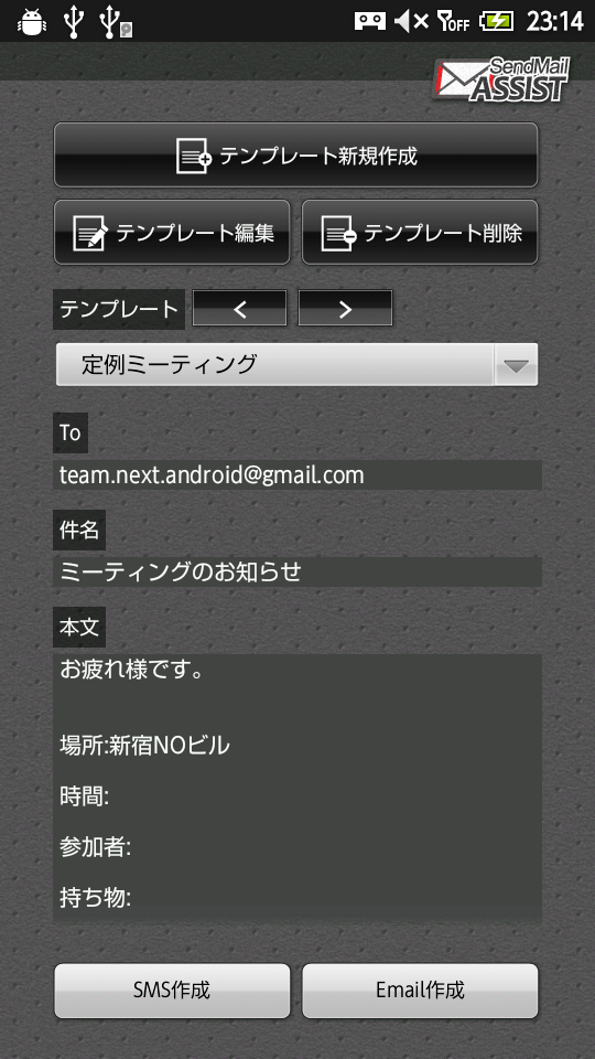and you can easily send that template (fixed form sentense) by e-mail or SMS.