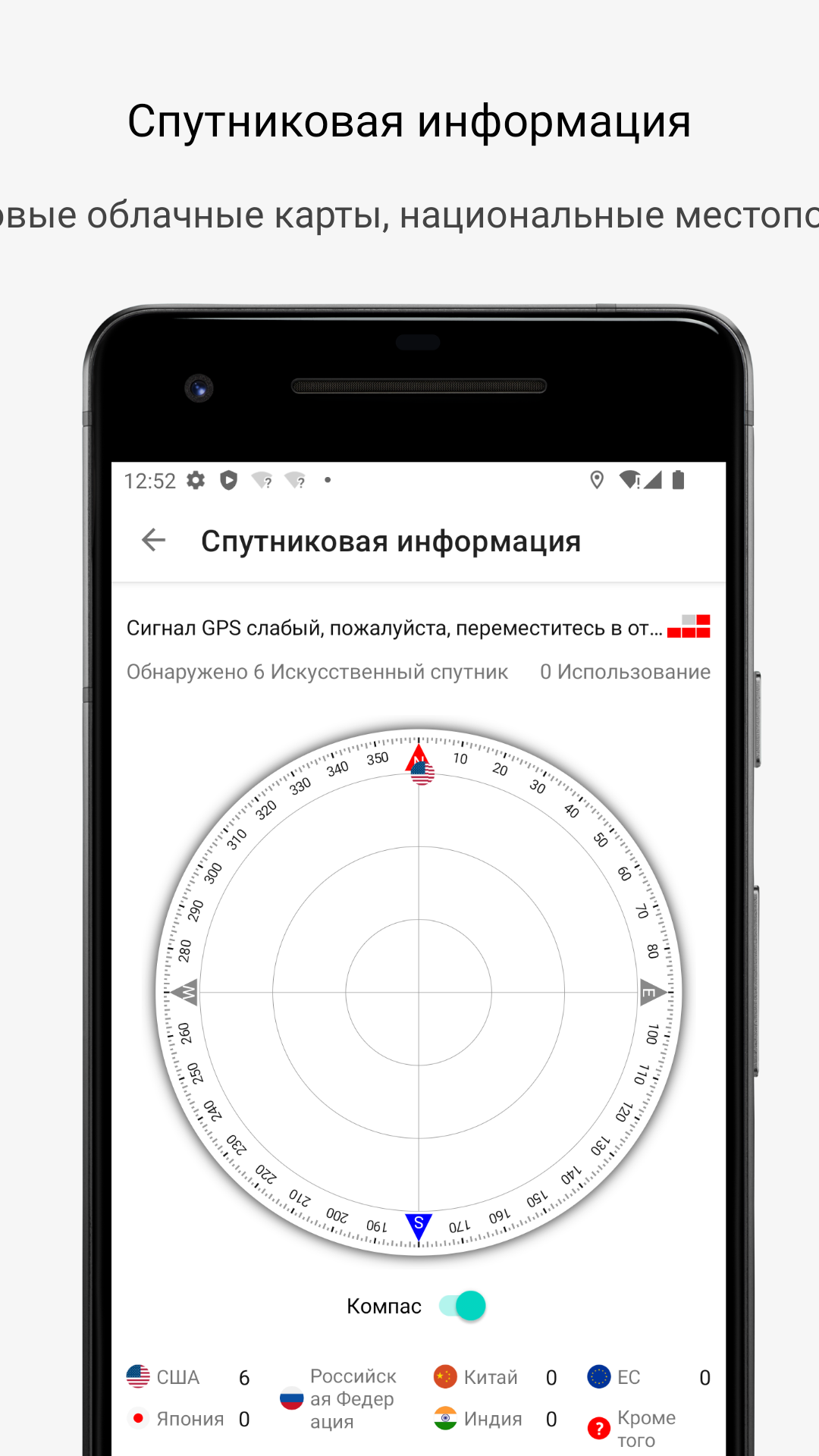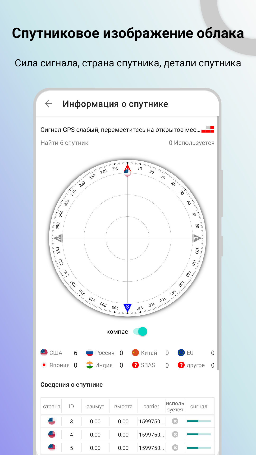 3. Сигнал GPS: обнаружение информации о сигнале GPS в режиме реального времени и получение спутниковой информации, включая название национальности (GPS США, Китайский Бэйдоу, Галилео ЕС, российский ГЛОНАСС, японская спутниковая система «Квази-Зенит», индийская IRNSS), количество спутников, реальное спутниковое время Местоположение, доступность, широта и долгота, адрес и другая информация;