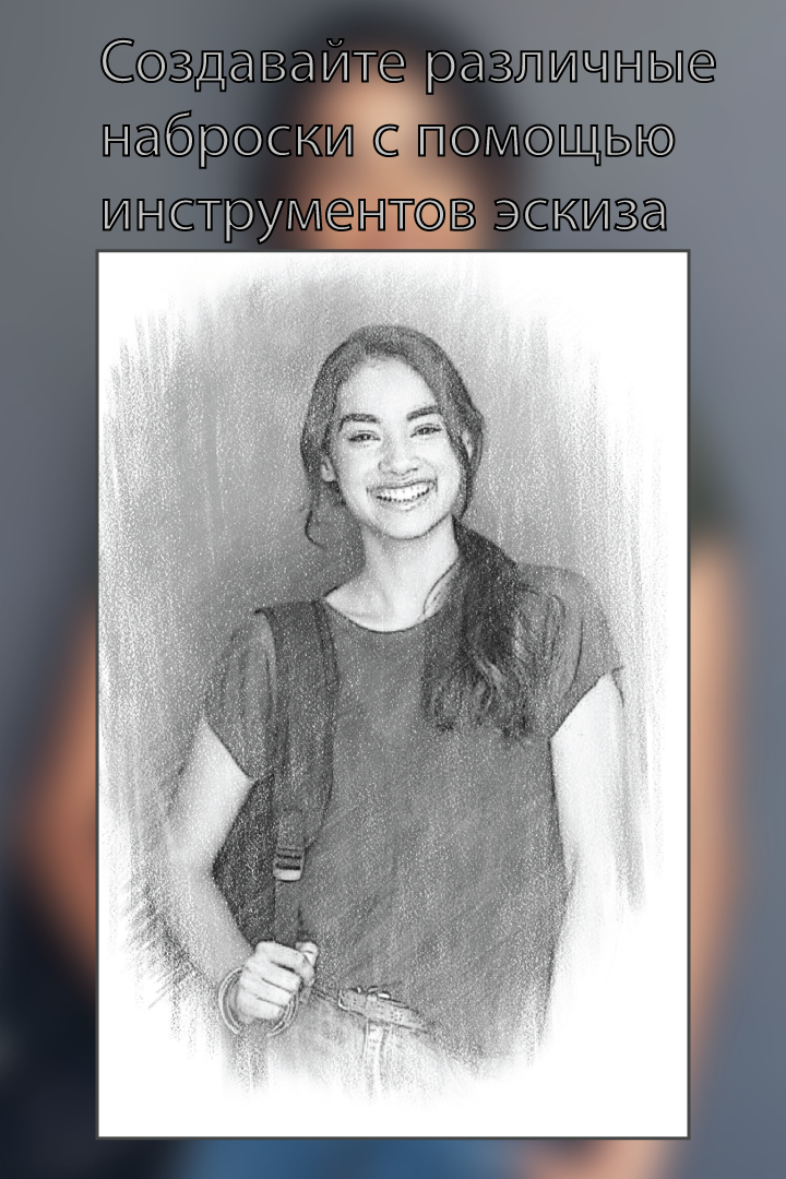 "Эскиз Photo Art: Редактор изображений может преобразовать любой тип фотографии или изображения в эскиз рисования искусства на руках. Это можно сделать, просто следуя некоторым простым шагам. Первый экран этого инструмента показывает кнопку изображения загрузки. Выберите любое изображение с устройства, чтобы преобразовать его в эскиз. Сделайте эскиз любой фотографии, используя эскиз Photo Art: редактор изображений. Создание рисунков рисунков карандашей, эскизы домов и эскизов тела, используя этот инструмент. Рекомендуемые форматы для эскизов являются PNG, JPG, JPEG. Через этот инструмент можно сделать до 07 типов эскизов. Исследуйте больше вариантов в инструменте в соответствии с потребностями. Это простой эскиз. Нанесите фильтры на изображениях через этот инструмент. Создатель коллажа для фотографий также включен в него. Есть 16 типов разных фильтров для фотографий, доступных в нем. Они могут быть использованы после загрузки изображений с устройства и настройки их размеров (пропустить эту опцию, если нет необходимости), а затем примените необходимый фильтр, чтобы сделать новый внешний вид выбранных изображений. Создание коллажа показывает новый внешний вид нескольких выбранных фотографий в одном кадре. Выберите более 01 фото или рисунки наброса, чтобы сделать его коллаж. После полного редактирования сохранить эскизы. Также сохраните фильтровальные фотографии и фотографии коллажа в устройство. Эскиз фотоарт: Особенности редактора изображений: 🗸 Изображение эскиз производитель 🗸 Легкий рисунок карандаша 🗸 Цветные эскизы 🗸 Смешайте эскизные эффекты 🗸 несколько фильтров 🗸 Multi-image Merge 🗸 Легкое создание коллажа Шаги для использования эскиз фотоарт: редактор изображений: ---> Открыть этот инструмент и нажмите кнопку «Загрузить изображение» с домашнего экрана ---> Набор и обрезку, если требуется и отрегулируйте его идеально ---> Выберите подходящий тип эскиза для изображения ---> Применить финальный тип эскиза на изображение ---> Сохранить изображение, используя верхнюю правую кнопку Сохранить"