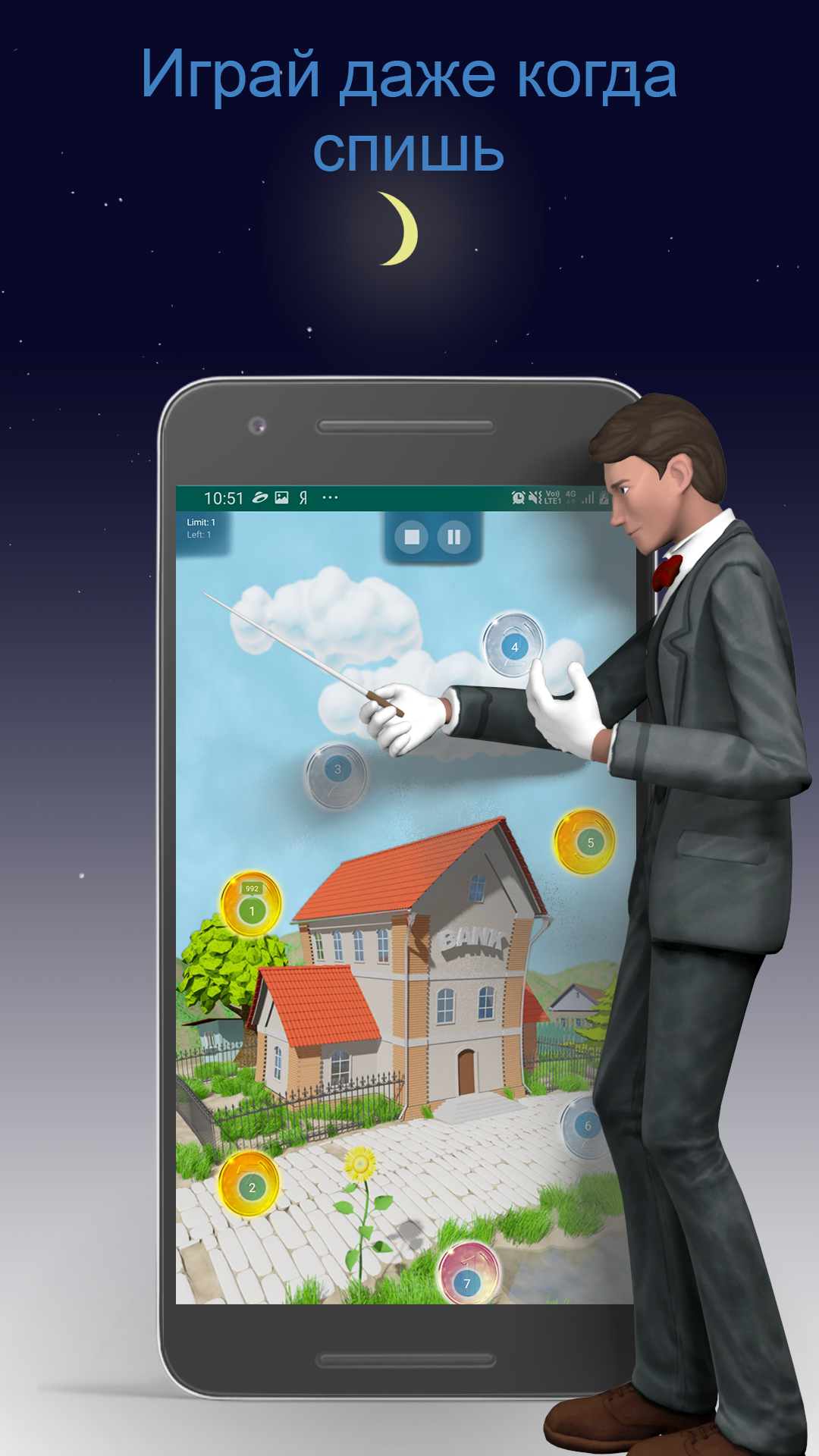 - отложенный запуск нажатий (например, при необходимости выполнения последовательности действий в ночное время либо в период отсутствия доступа к мобильному устройству).