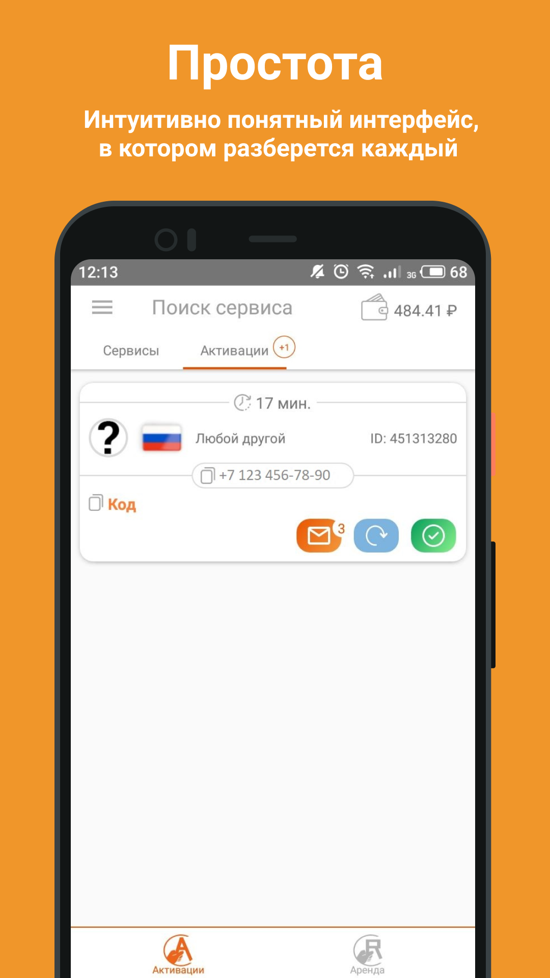Приложение SMS-Activate позволяет купить виртуальный номер для регистрации в пару кликов. Скачайте его на смартфон, и в любой момент вам будет доступна переадресация звонков или получение SMS на виртуальный номер. Ситуация: при регистрации соцсеть, мессенджер или другой сервис запрашивает ваш номер, но у вас уже есть зарегистрированный аккаунт или вы просто не хотите оставлять свой приватный номер. Решение: приобретите виртуальные номера для регистрации и получите код подтверждения прямо в приложении SMS-Activate. Одноразовые номера для WhatsApp, Telegram, Viber и др. сервисов сделают регистрацию быстрой и удобной. В нашем приложении вы можете купить недорогие виртуальные номера одной из 180+ стран. Одноразовый номер для регистрации не просто позволяет сохранить анонимность, но и поможет обходить региональные блокировки. У нас вы всегда можете получить телефонный номер без SIM-карты или привязки к паспортным данным по самым доступным ценам.