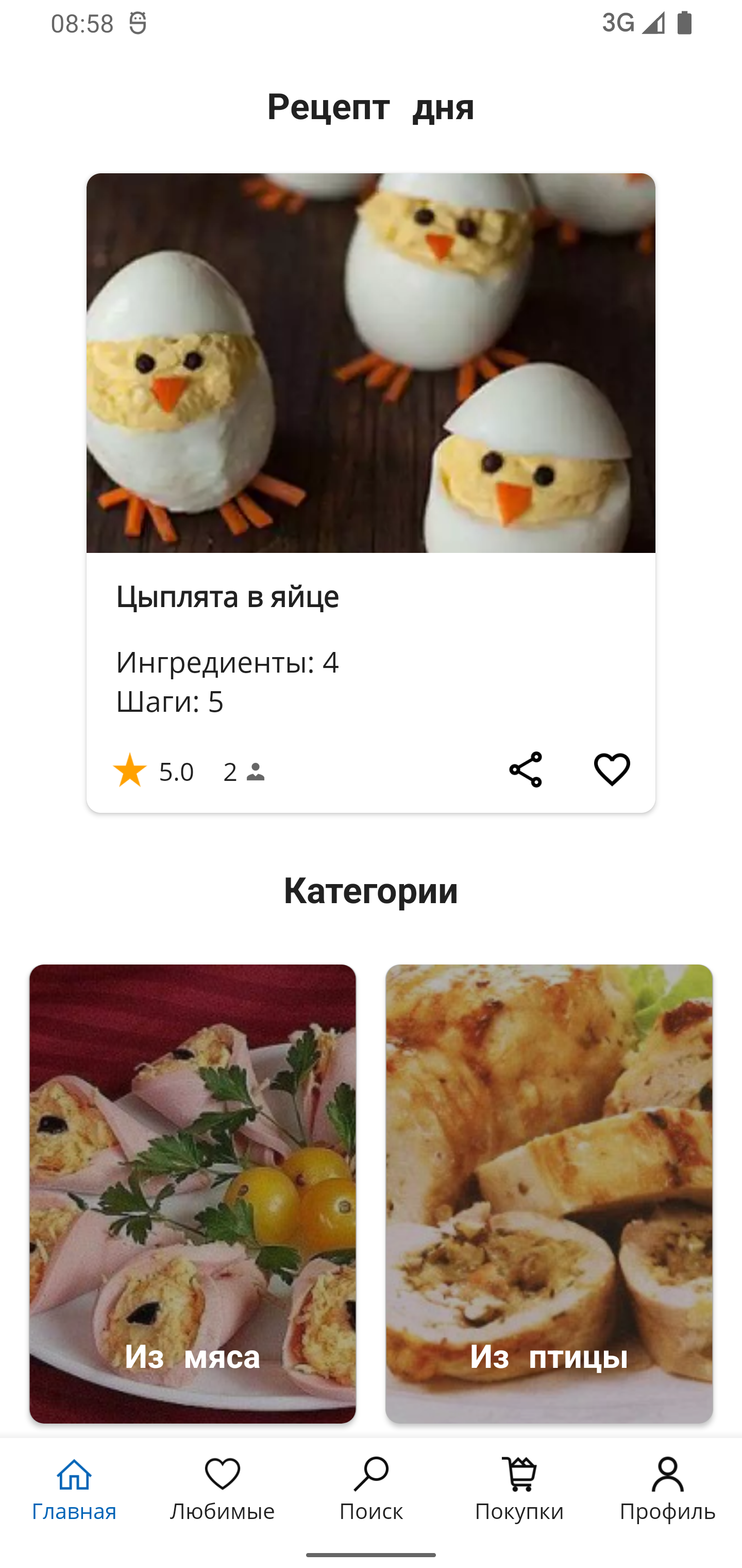 Все рецепты закусок разделены на категории для удобного использования. Также в приложении есть удобный поиск по названиям и по ингредиентам, который упрощает для Вас выбор рецептов.