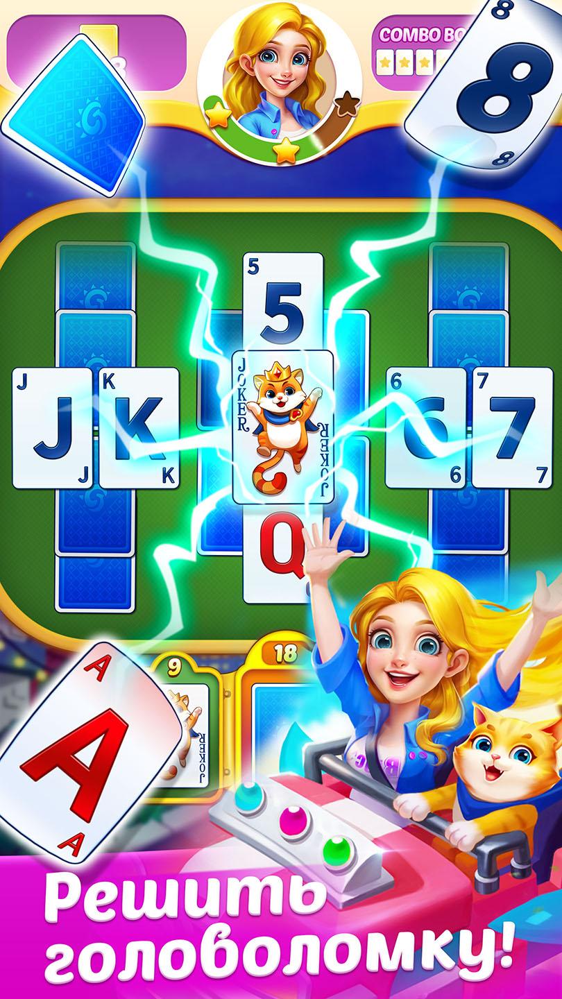 ✓ Каждый раз, когда вы решаете карточную головоломку, за вас будет болеть красивая девушка!