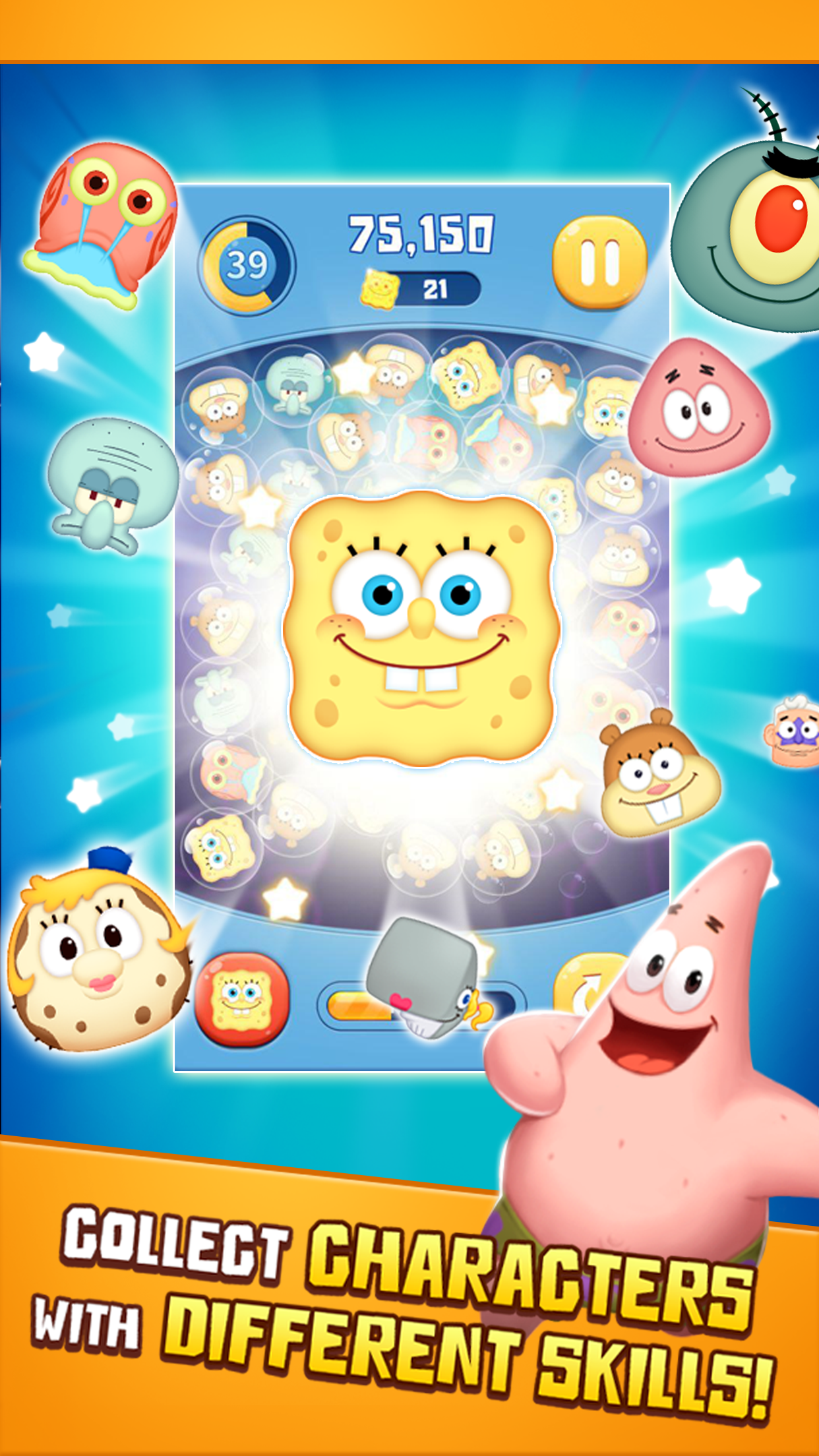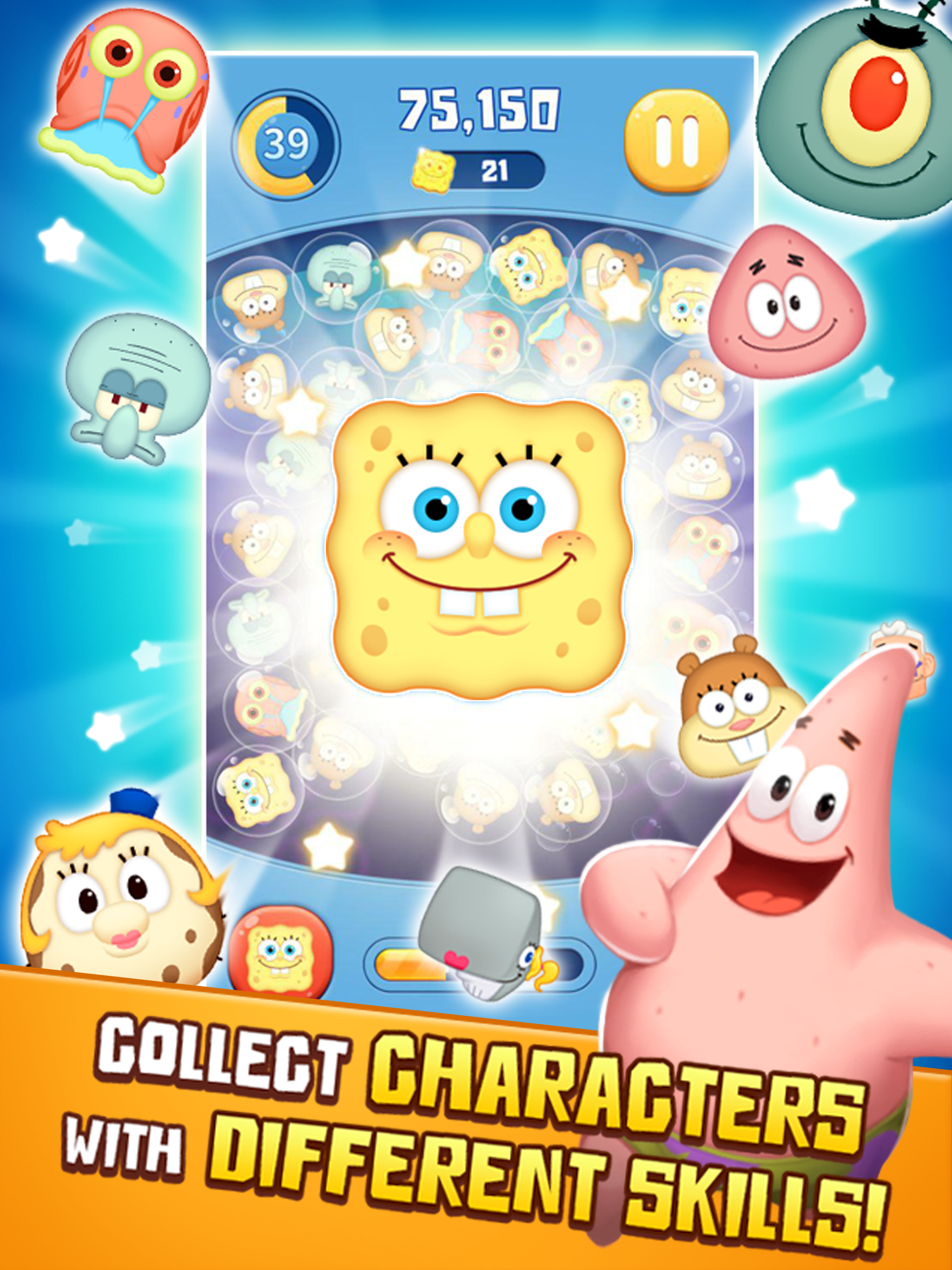 - Каждый персонаж SpongeBob обладает уникальными навыками. Выберите персонажа, который лучше всего соответствует вашей стратегии игры!