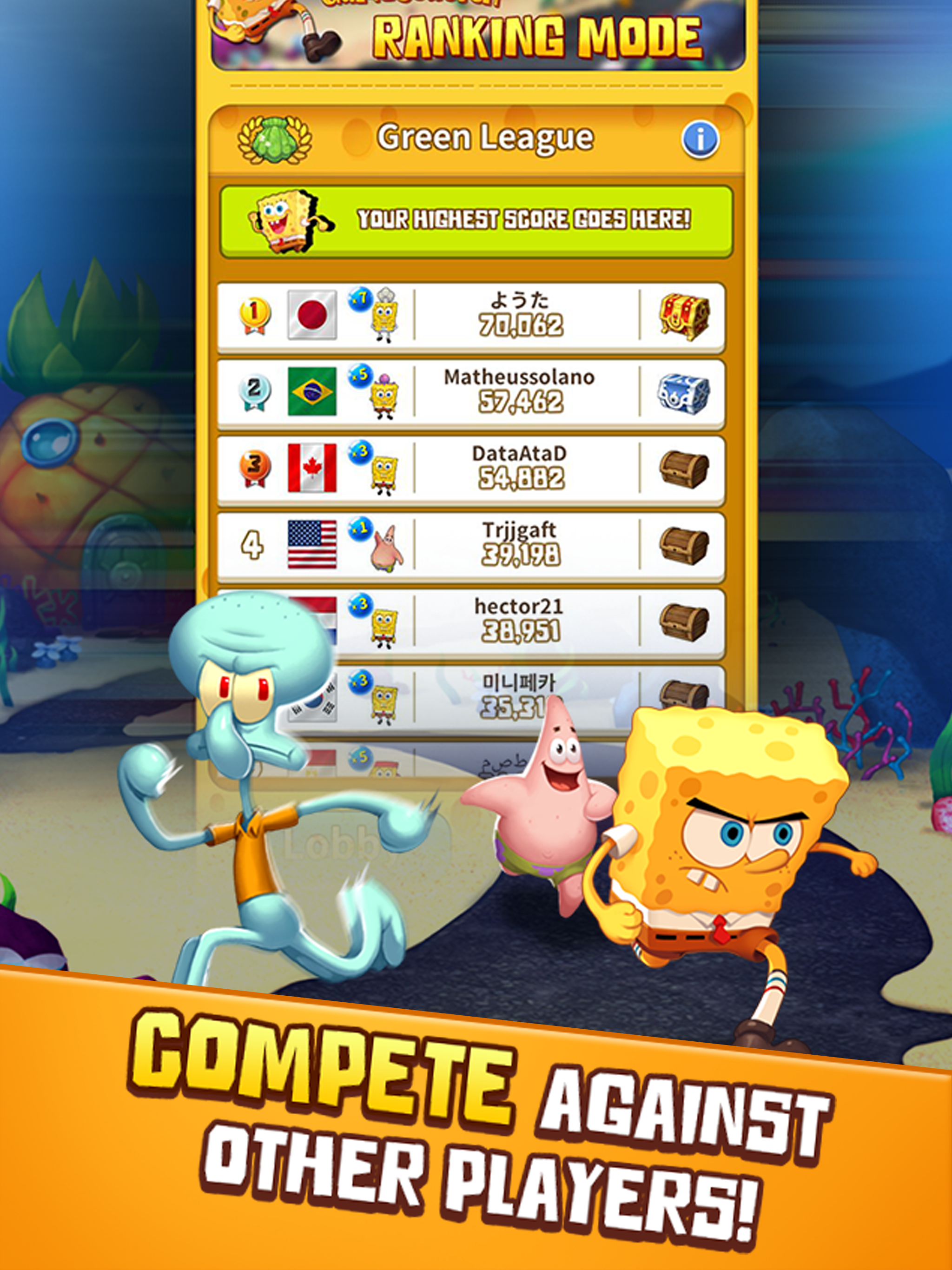 ● Собирай и обновляй коллекцию карточек с персонажами Губки Боба, Патрика и Сквидварда для помощи в игре!