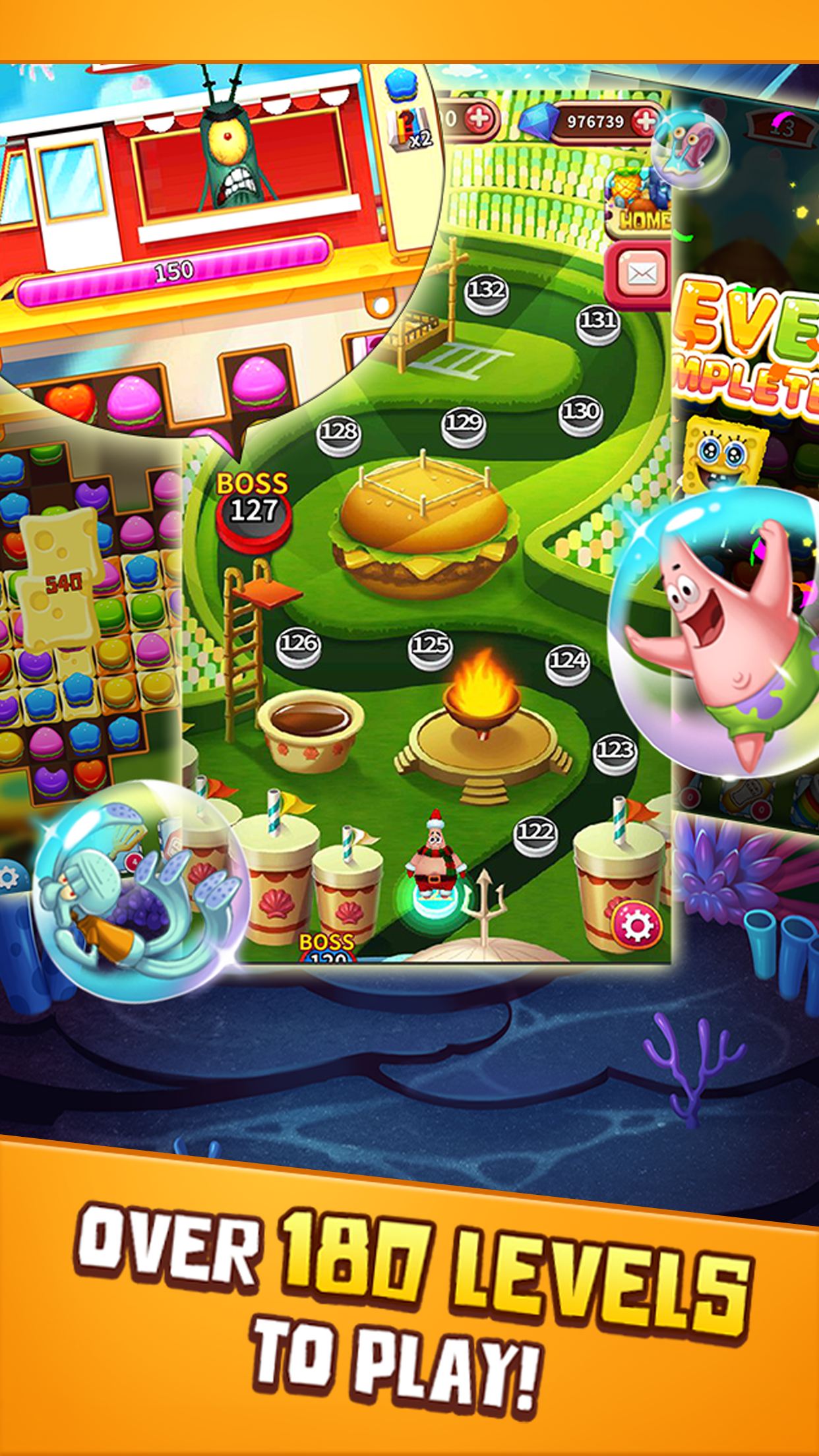 ● КУБИКИ ГУБКА БОБ: управляй собственным рестораном «Красти Краб» с Губкой Бобом в игре «Три в ряд».