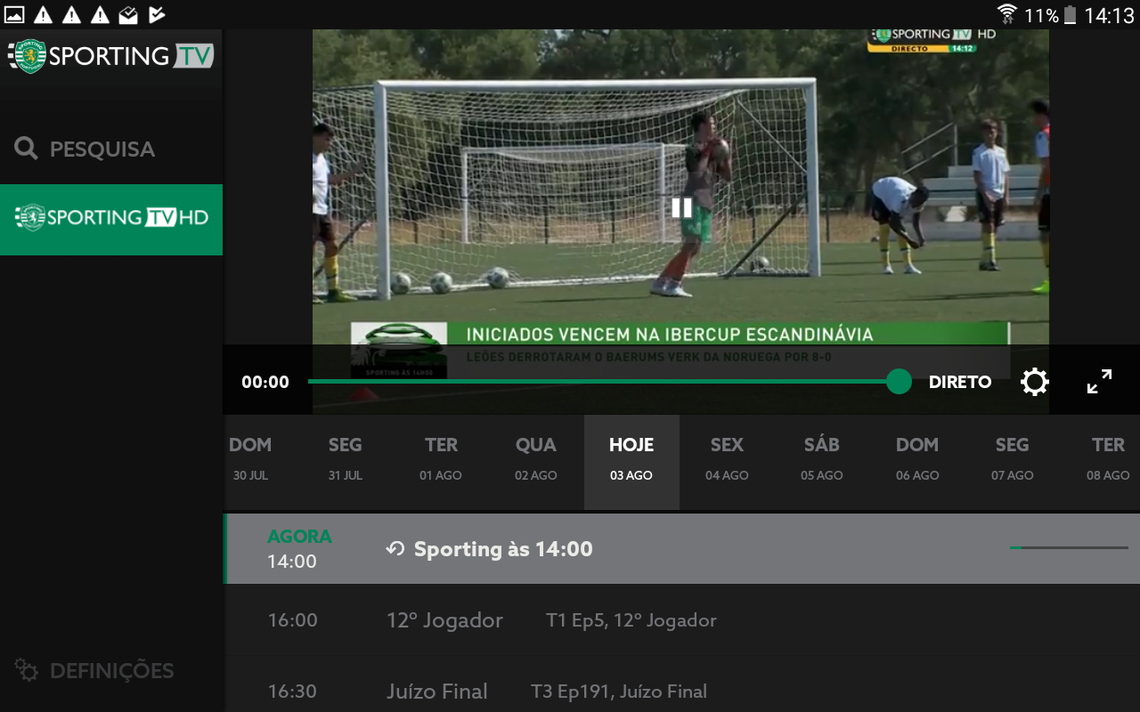 Приложение Sporting TV Online предоставляет доступ к Canal Sporting TV на планшете или смартфоне. -------------------------------------------- черты --------------------------------------------- - Просмотр Sporting телеканала в прямом эфире - Просмотр программы с Auto-Save последние 7 дней - Обратитесь телегида - Поиск программ ** Примечание: ** 1) Чтобы получить доступ, подписаться на услугу в sportingtvonline.nos.pt 2) Эта услуга не доступна в следующих странах: Португалии, Анголы, Мозамбика, Кабо-Верде, Бразилия, Алжир, Бахрейн, Египет, Иран, Ирак, Израиль, Иордания, Кувейт, Ливан, Ливия, Марокко, Оман, Палестина, Катар, Саудовская Аравия, Сирия, Тунис, Объединенные Арабские Эмираты, Йемен, Джибути, Сомали, Судан. --------------------------------------------- требования --------------------------------------------- - Совместимость с версиями Android 4.3 и выше - Wi-Fi соединение, 3G или 4G - Минимальные требования к аппаратному обеспечению: 1 гигабайт оперативной памяти (Гб), а также 1 гигагерц (ГГц)