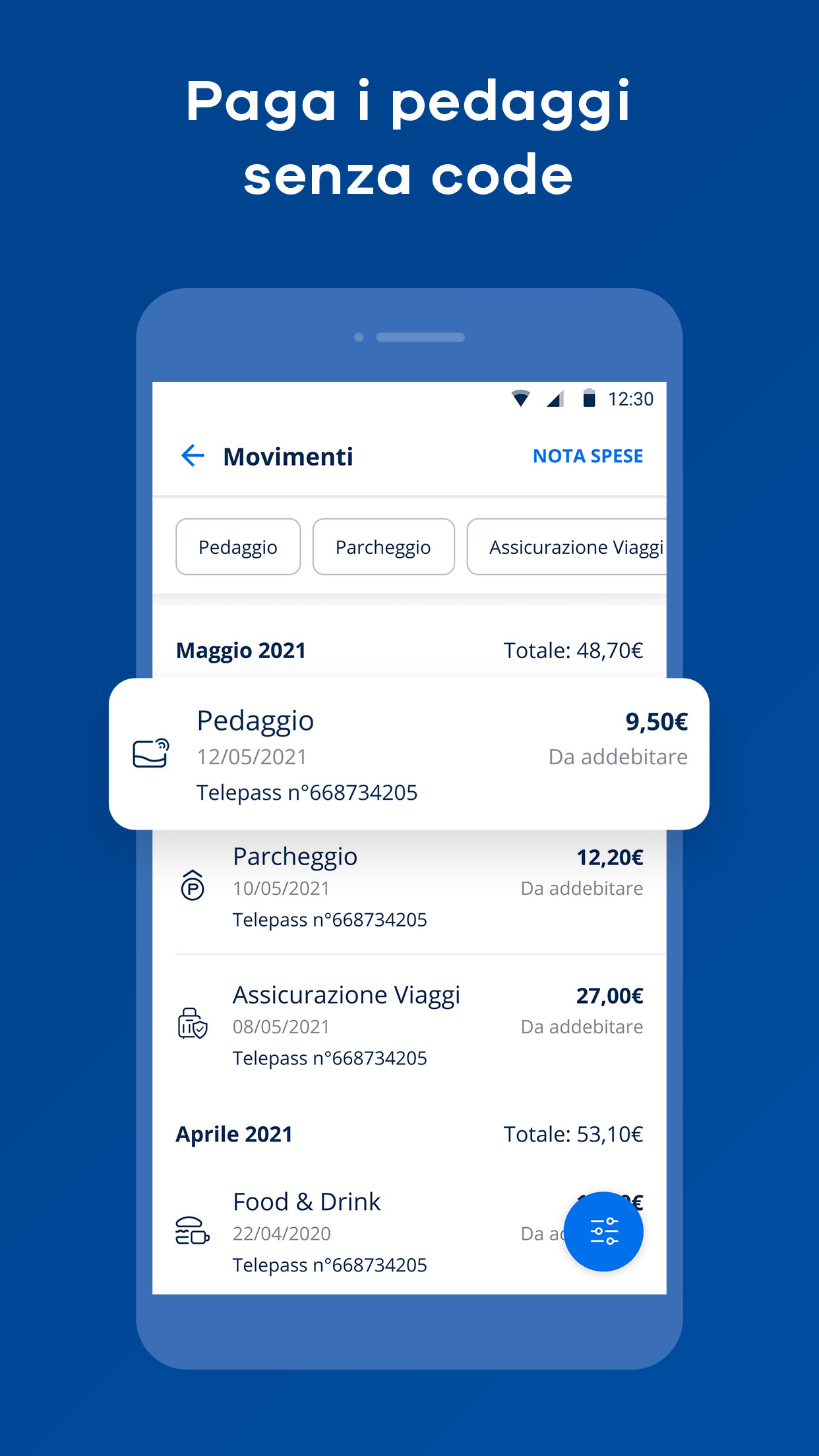 Почти 2 000 000 человеков произвели революцию в том, как они передвигаются. Присоединяйтесь тоже. Telepass — это больше не просто плата за проезд по автомагистралям без очередей: это первое крупное приложение, посвященное миру мобильности, от заправки топливом до аренды электровелосипедов и скутеров и покупки билетов на поезд. Все без наличных и безопасным, простым и быстрым способом. Мобильность имеет новое имя, не отставая от вашей жизни. ЗАПРАВЛЯЙТЕ ГДЕ ХОТИТЕ • С услугой «Топливо» вы ищете ближайшую к вам станцию. • Заправляйтесь безопасно, удобно и быстро, оплачивая прямо в приложении, не прикасаясь к наличным деньгам или картам. • Отслеживайте все свои платежи в разделе «Движения». ОПЛАЧИВАЙТЕ СИНИЕ ПОЛОСЫ • Платите за билеты Blue Stripes в Риме, Милане и других итальянских городах прямо в приложении и без необходимости искать парковочный счетчик. • С услугой Strisce Blu вы указываете, как долго вы хотите парковаться, вы платите только за фактические минуты и можете прекратить или продлить свое пребывание без дополнительных затрат. СЛЕДИТЕ ЗА СРОКАМИ • С помощью Memo Service проверьте сроки уплаты дорожного налога, автострахования и техосмотра в любое время и бесплатно. • Подтвердите или измените номерной знак, и услуга будет немедленно активирована для всех соответствующих номерных знаков. • Мы сообщим вам об уплате гербового сбора, который вы сможете оплатить сразу же прямо в приложении. АРЕНДА СКУТЕРОВ, ВЕЛОСИПЕДОВ И ЭЛЕКТРОСКУТЕРОВ • Найдите ближайший к вам велосипед, самокат или электросамокат с помощью геолокации и начните поездку. • Услуги Bike Sharing и Scooter доступны в Риме, Турине, Милане, Бари, Неаполе и многих других городах Италии. • Благодаря Sharing Mobility вы можете передвигаться по городу, избегая пробок и не нанося вред окружающей среде. КУПИТЬ БИЛЕТЫ НА ПОЕЗД • С услугой «Поезда» вы можете купить билет на поезд за несколько минут до отправления, не заходя на веб-сайт Trenitalia или непосредственно на станцию. • Введите пункт назначения, дату, время, количество пассажиров и код Cartafreccia (если он у вас есть), и вы сможете изменить свой билет или запросить возврат средств, и все это удобно в приложении. • Незадолго до отъезда мы отправим вам уведомление с информацией о вашей поездке. АКТИВИРОВАТЬ ОБЛАСТЬ C МИЛАН • Мы автоматически обнаруживаем доступ благодаря считыванию номерных знаков, связанных с вашим устройством Telepass. • Автоматически платить за вход в Зону C без дополнительной платы. • Больше никаких штрафов, даже если у вас нет устройства на борту. БЕЗ НАЛИЧНЫХ, НАДЕЖНО • Оплатить все в приложении с прямым дебетом на ваш текущий счет. • Ваше приложение защищено 6-значным PIN-кодом и биометрическим распознаванием. Чтобы быть в курсе новостей, рекламных акций или просто чтобы лучше понять, как это работает, посетите www.telepass.com, мы ждем вас!