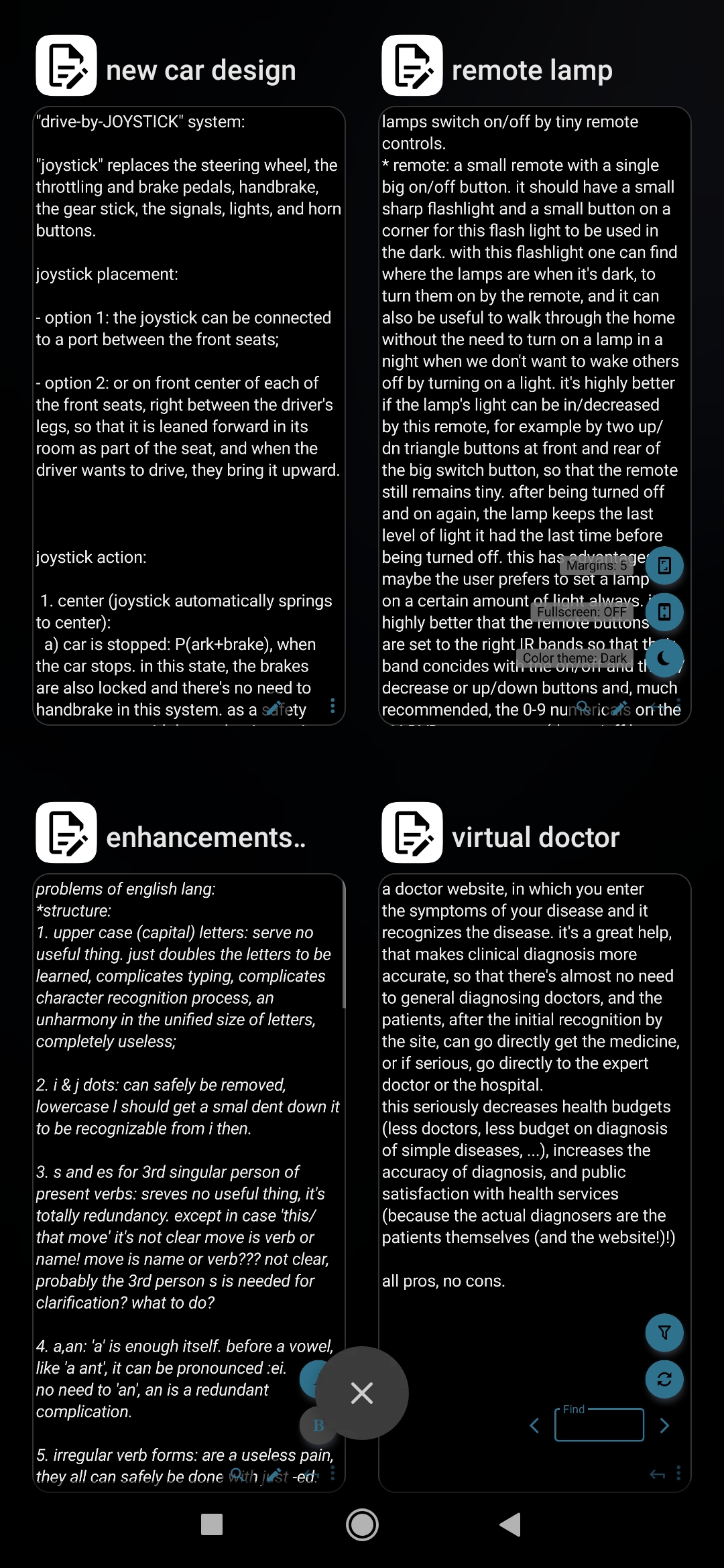 Возможности Text Pro: + Производительность: & nbsp; & nbsp; ✓ Наименьшее: Размер 700 КБ, самый маленький текстовый редактор в магазине Play. & nbsp; & nbsp; ✓ Самый легкий: Самая низкая загрузка ЦП и ОЗУ среди известных текстовых редакторов. & nbsp; & nbsp; ✓ Самый быстрый: В 2+ раза быстрее, чем большинство известных текстовых редакторов, открывается и действует в мгновение ока! & nbsp; & nbsp; ✓ Наибольшее: С более чем 80 кнопками с различными действиями, TEXT Pro предлагает самую большую коллекцию текстовых инструментов. & nbsp; & nbsp; ✓ Умный: Алгоритмы автоматизируют действия по умолчанию с помощью ИИ. + Файлы: & nbsp; & nbsp; ✓ Создавать, открывать и редактировать простые текстовые файлы & nbsp; & nbsp; ✓ Поддержка автономного и облачного хранилища & nbsp; & nbsp; ✓ Режим только для чтения & nbsp; & nbsp; ✓ Сохранить как вручную и автосохранение & nbsp; & nbsp; ✓ Менеджер кеша + Окно: & nbsp; & nbsp; ✓ Многооконный режим (в меню "Последние новости" Android) & nbsp; & nbsp; ✓ Полноэкранный режим & nbsp; & nbsp; ✓ Светлые / Темные и Пользовательские цвета с расширенными цветовыми палитрами HSL / RGB / HEX + Быстрые действия: & nbsp; & nbsp; ✓ Автоматическое скрытие кнопок быстрого действия (Открыть, Изменить, Сохранить как, Найти, Отменить и Вернуть) & nbsp; & nbsp; ✓ умная отмена и повтор со счетчиком & nbsp; & nbsp; ✓ Найти и заменить счетчиками + Меню: & nbsp; & nbsp; ✓ Расширенное меню с материальным дизайном, эргономичные, минималистичные ненавязчивые плавающие кнопки & nbsp; & nbsp; ✓ Категоризация настроек страницы, текста, шрифта + Настройки текста: & nbsp; & nbsp; ✓ Автоматическое / ручное выравнивание текста & nbsp; & nbsp; ✓ Автоматическая / ручная перенос / распаковка текста & nbsp; & nbsp; ✓ Межстрочный интервал & nbsp; & nbsp; ✓ Счетчик символов / слов / строк и индекс читаемости & nbsp; & nbsp; ✓ Проверка орфографии & nbsp; & nbsp; ✓ Расширенный проигрыватель преобразования текста в речь с разными языками и голосами + Настройки шрифта: & nbsp; & nbsp; ✓ Шрифт: полужирный / курсив & nbsp; & nbsp; ✓ Размер, цвет и тень шрифта & nbsp; & nbsp; ✓ Поддерживает текстовые кодировки ! Известные проблемы: - В настоящее время он оптимизирован для файлов меньшего размера, медленный для файлов MB +. - Горизонтальная полоса прокрутки опускается вниз с содержимым. - Окно мигает при переключении тем. - Средство чтения текста не отображает слова перед окном полностью. Мы рассмотрим их и будем благодарны вам, если вы сообщите о своих проблемах. ___________________ Возможности, которые появятся в следующих версиях: + Шрифт: & nbsp; & nbsp; - Шрифт текста & nbsp; & nbsp; - Автокодирование + Текст: Уровень персонажа: & nbsp; & nbsp; - Использование заглавных букв & nbsp; & nbsp; - Вставить символы и специальные символы (+ дата / время) На уровне абзаца: & nbsp; & nbsp; - Номера строк & nbsp; & nbsp; - Нумерация и маркировка & nbsp; & nbsp; - Сортировка элементов (буквенно-цифровая и т. д.) Выбор текста: & nbsp; & nbsp; - Многократное нажатие для выбора символа / слова / предложения / абзаца & nbsp; & nbsp; - Гладкое закругленное выделение выделения & nbsp; & nbsp; - Контекстное меню UX материалов с искусственным интеллектом (AI) Рассмотрение: & nbsp; & nbsp; - Подсветка синтаксиса & nbsp; & nbsp; - Двойная панель (панель перевода) & nbsp; & nbsp; - Сравнить файлы + Меню быстрых действий: & nbsp; & nbsp; - Расширенный поиск (поиск в выделенном фрагменте и т. д.) & nbsp; & nbsp; - Расширяемое быстрое меню & nbsp; & nbsp; - Добавить в быстрое меню & nbsp; & nbsp; - Часто используемые действия + Меню: & nbsp; & nbsp; - Прокручиваемые меню & nbsp; & nbsp; - Пункт меню слева & nbsp; & nbsp; - Перетаскиваемое ме