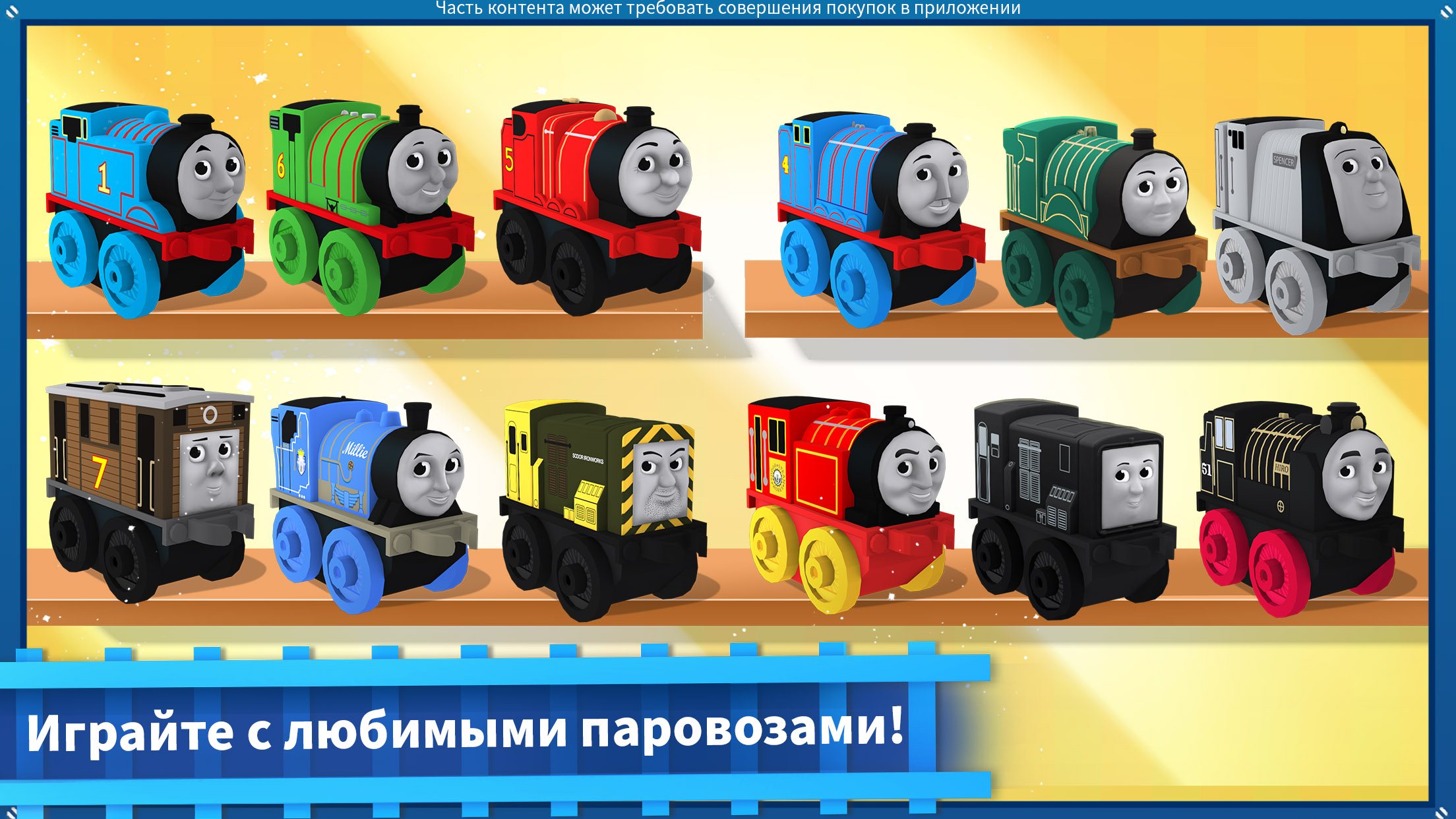 Budge Studios™ представляет игру Thomas & Friends™ Minis! Соберите железную дорогу и отправьте поезд в путь с Thomas и его друзьями. Устройте на своей железной дороге извилистые водные горки, ледяные петли, радужные мосты, пути из костей динозавра и многое другое! Забирайтесь в любимый мини-паровоз и насладитесь каждым изгибом, поворотом и петлей своей дороги! На старт, внимание, строй!