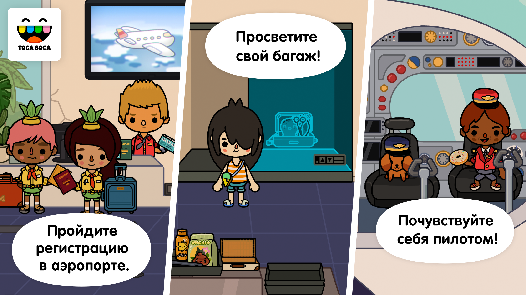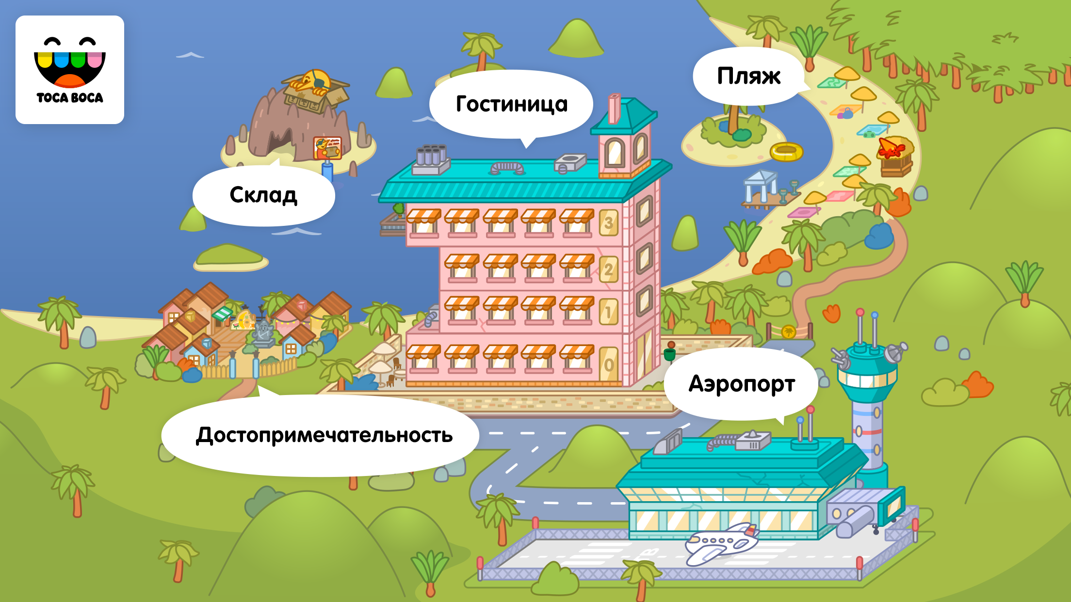 В отпуске что ни день, то приключение! Почувствуйте радостное возбуждение, ожидая свой рейс в аэропорте. Попрыгайте на кровати в гостинице. Выкопайте сокровище на берегу. Создайте собственный веселый отпуск с Toca Life: Vacation! ИССЛЕДУЙТЕ В игре Toca Life: Vacation можно как следует порезвиться в 4 местах. Будьте уверены, у вас не закончатся идеи для своих историй. Хотите начать приключение прямо с аэропорта? Повеселитесь с рентгеновским аппаратом, пройдите в салон самолета и осмотрите его кабину. Потом перекусите и насладитесь полетом! По прибытию у вас будет уйма возможностей проявить себя: сходите в магазин, поглазейте с мостков, поиграйте на пляже, займитесь серфингом и осмотрите гостиницу. ИЗУЧАЙТЕ В Toca Life: Vacation вас ждет немало сюрпризов. Узнайте, кто проживает на дне океана, откройте секретную ячейку, выкопайте зарытые сокровища и узнайте, что за тайну хранит загадочная статуя. ОСОБЕННОСТИ – Исследуйте 4 места действия: аэропорт, гостиницу, пляж и достопримечательность. – Создайте истории 34 новых персонажей. – Просвечивайте багаж или людей в аэропорте! Прошмыгните в кабину пилотов и перекусите в самолете. – Подкрепитесь в гостиничном буфете и совершите налет на холодильник в номере. – Поиграйтесь с гостиничным лифтом, затем прокатитесь на верхний этаж и насладитесь видом из личного пентхауса. – Накупите сувениров в лавке, сфотографируйтесь на пляжных стендах и утолите голод на мостках. – Порезвитесь на пляже и познакомьтесь с животным миром океана. – Узнайте все тайны острова! – Вас никто не подгоняет и не оценивает. Играйте вволю, сколько захотите! – Никакой посторонней рекламы. – Никаких покупок внутри приложения. МЫ ПРИСЛУШИВАЕМСЯ К ВАМ Вы хотели игру про отпуск? Получите! Нам понравились ваши предложения о гостинице, пляже и аэропорте, так что присылайте еще! Что бы вы хотели увидеть в серии Toca Life? Поделитесь своими предложениями в обзоре, с помощью @tocaboca или в Instagram и на YouTube! *** О TOCA BOCA Сотрудники Toca Boca убеждены, что игра стимулирует воображение ребенка и помогает ему познавать мир. Создавая наши продукты, мы стараемся смотреть на вещи глазами ребенка, чтобы побудить его играть, творить и воплощать свои мечты. Среди наших разработок — удостоенные наград приложения, насчитывающие более 130 млн загрузок в 215 странах мира. Мы предлагаем веселые и безопасные игры с открытым концом. Узнать о нас и о наших продуктах подробнее вы можете на нашем сайте tocaboca.com. ПОЛИТИКА КОНФИДЕНЦИАЛЬНОСТИ Мы относимся очень серьезно к вопросу конфиденциальности. Чтобы узнать больше о том, как мы работаем с этими вопросами, прочтите нашу политику конфиденциальности: http://tocaboca.com/privacy