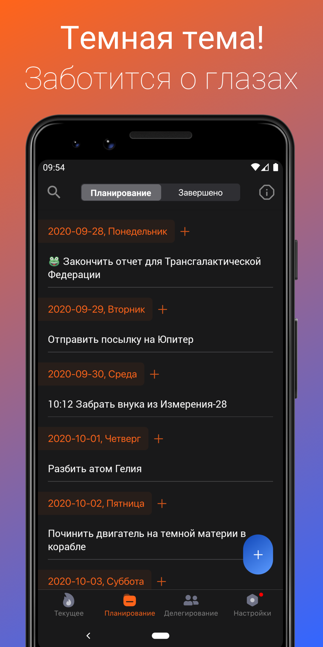 Системы продуктивности не работают. Тудурант — работает. Тщательно продуманный набор ограничений и точек похвалы учит примитивную часть мозга хотеть продуктивность так же, как мы подсаживаемся на сахар. В то время как другие приложения фокусируются на хранении, организации и автоматизации бесконечных списков задач, Тудурант концентрируется на том, что важно: на выполнении задач. — Больше никаких "проектов": этот концепт никогда не работает в долгосрочной перспективе (у всех нас есть списки: "спорт", "самосовершенствование", "когда-нибудь, может быть", которые мы никогда не открываем). — Больше никаких бесхозных задач: у каждой задачи есть день или месяц для выполнения — Сосредоточьтесь на том, что важно: вы видите и работаете только над одной задачей за раз после того, как закончите планирование — Извлекайте пользу от истощения силы воли: отмечайте неприятные задачи как "лягушки", и Тудурант заставит вас делать их утром, когда шансы закончить задачу наиболее высокие — Контролируйте свои задачи: вы всегда знаете, что делаете сейчас и когда каждая из задач будет выполнена - Помните *обо всем*: больше не надо думать: "Неужели я забыл ту вещь, которую меня просил сделать Ваня?", "Что там за форма, которую нужно отправить в пенсионный фонд?", "Что я там должен был сделать для работы?". — Научитесь быть продуктивными: Тудурант дает вам список правил и постоянно напоминает о них. Почему это работает? Я прочитал и опробовал более 20 книг и методологий производительности. Уверен, вы тоже какие-нибудь системы пробовали. К сожалению, они мне так и не помогли: либо у них не хватало возможностей, либо они были слишком сложными для поддержания каждый день. Поэтому я объединил их все и упростил результат. Убрал все, что не помогало или вредило продуктивности, и оставил то, что работает. Причина, по которой люди, пользующиеся Тудурантом, успешны, заключается в том, что он не перегружает ваш "умный" мозг, нравится вашему "примитивному" мозгу и никогда не заставляет вас беспокоиться о невыполненных задачах. Попробуйте сегодня, не откладывайте положительные изменения в своей жизни!