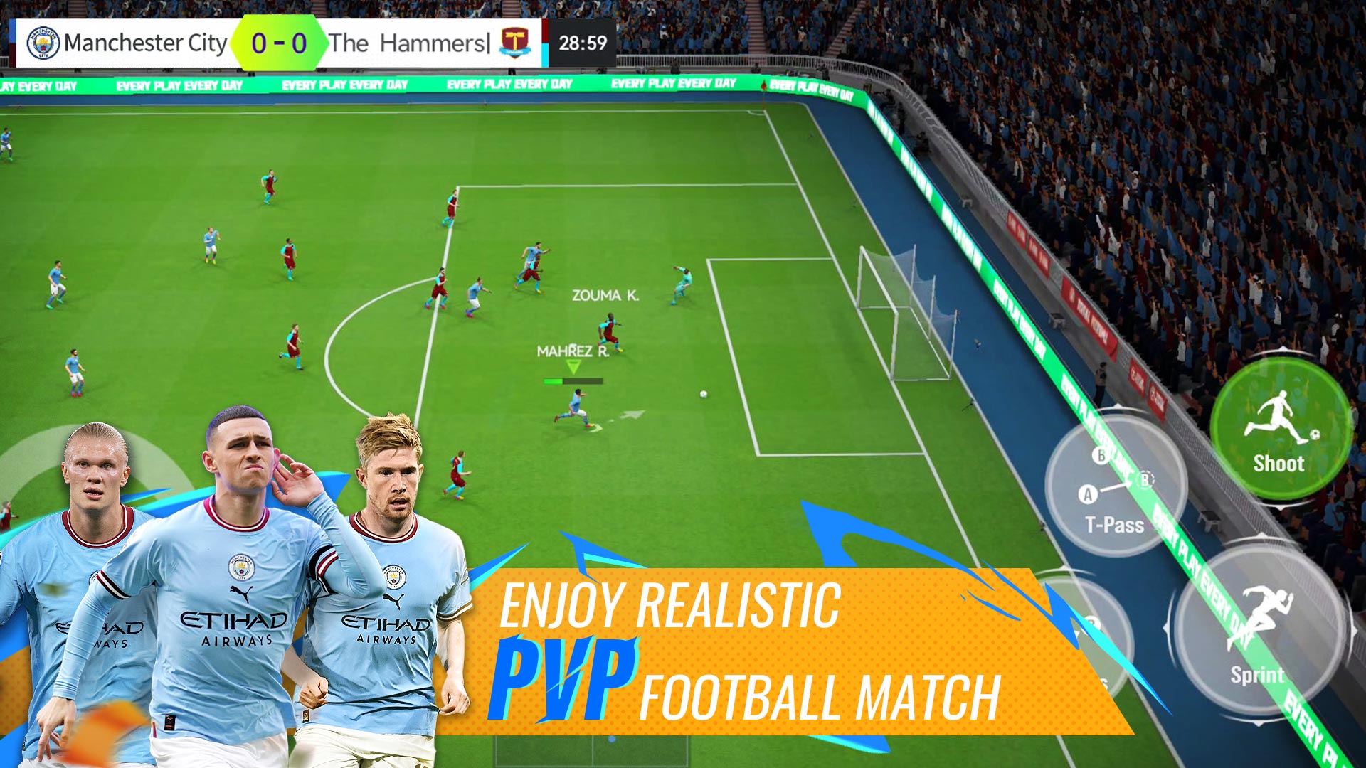 4. High-definition 3D игроки и уникальная анимация суперзвезд обеспечивают игрокам все захватывающие впечатления, которые они могут себе представить в Mobile Football.