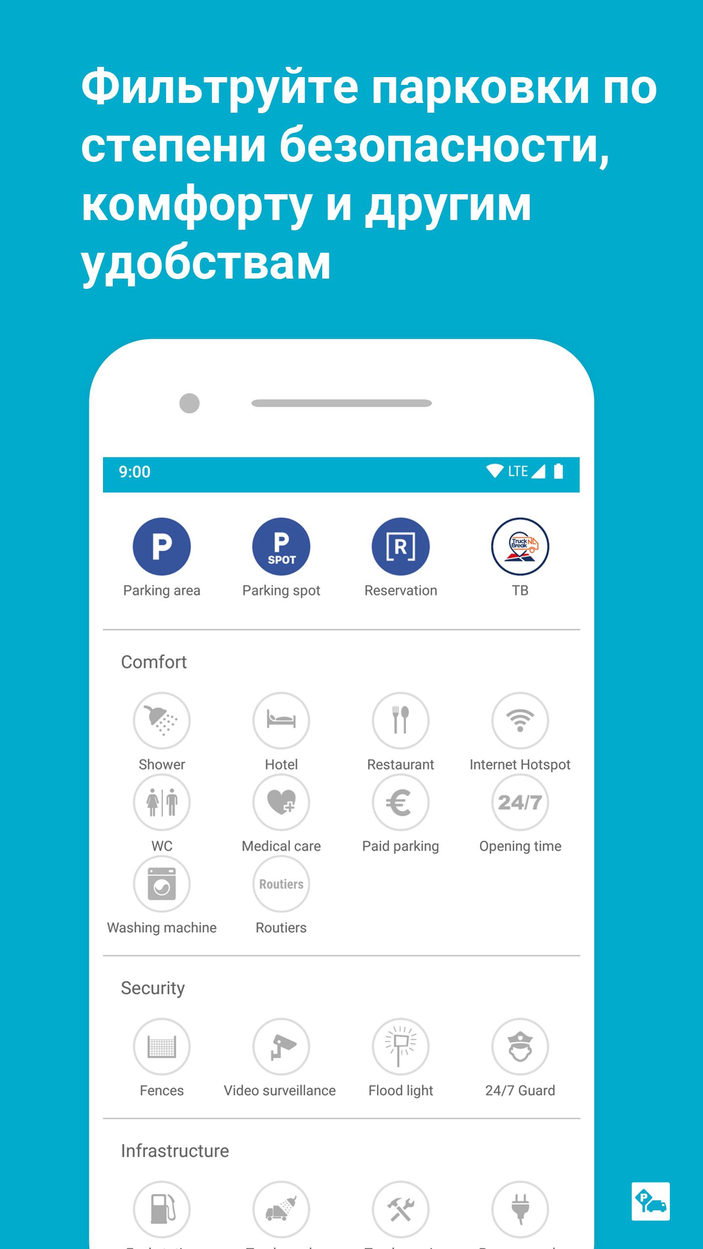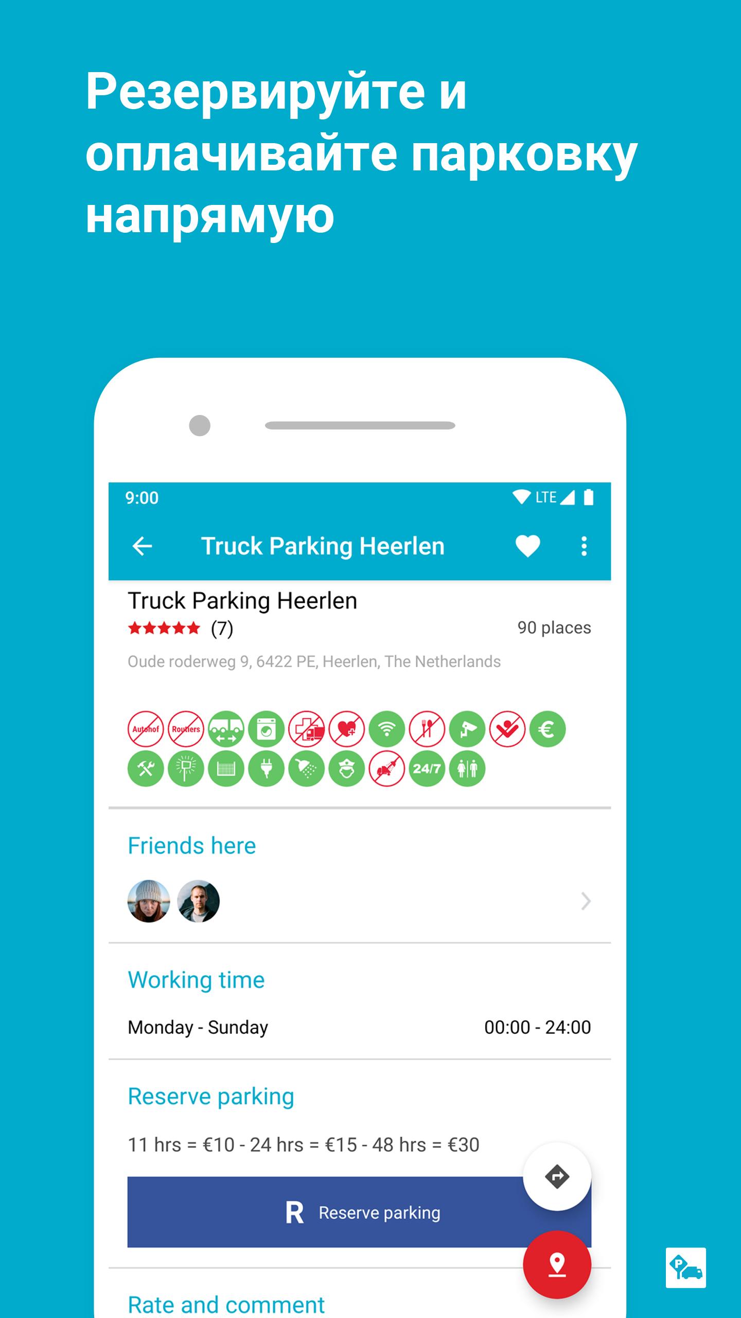 Truck Parking Europe («Парковка грузовиков в Европе») – Сообщество водителей Truck Parking Europe — это крупнейшая бесплатная европейская платформа, посвященная парковкам для грузовиков. Постоянно растущая база данных парковок, развитием которой занимается сообщество, содержит как официально обозначенные парковки для грузовиков, парковки на автострадах и автомобильные парковки, так и другие подходящие места для парковки, например, в промышленных районах. При этом сведения о всех таких местах обновляются и оцениваются общеевропейским сообществом. --- Каждый, кто каждый день оказывается на дороге, знаком со следующей ситуацией: из-за строгих правил вождения и отдыха, а также отсутствия достаточного числа мест для стоянки автомобилей на основных дорогах-транспортных коридорах, поиск подходящего места для парковки — это проблема, особенно, если вы хотите по максимуму использовать разрешенное время для вождения. Truck Parking Europe — это решение данной проблемы. Обширная база данных о парковках упрощает ежедневный поиск парковок на европейских магистралях. В дополнение к данным об официальных парковках, парковочное приложение содержит сведения о подходящих и удобных местах для парковки на дальних магистралях, полученные на основе личного опыта членов общеевропейского сообщества. Комплексная функция оценки парковочных мест приносит много дополнительной пользы, помогая вам выяснить такие вопросы, как, например, каких мест парковки вам следует избегать, какие являются более предпочтительными, какие из них освещены, находятся под наблюдением или рядом с зонами под наблюдением, например, площадками фабрик. Находите места для парковки, которые отвечают вашим потребностям, и одновременно получайте преимущества, пользуясь возможностями добавления ваших собственных парковочных мест в базу данных, исправления и оценки существующих данных, а также предоставления другим людям сведений о парковках. Воспользуйтесь преимуществами участия в общеевропейском сообществе Truck Parking Europe! Приложение и участие являются бесплатными. Обратите внимание, что приложение предоставляет собой только платформу для данных, которые, по существу, создаются пользователями приложения. Всегда будем рады получить предложения от водителей грузовиков по дополнительным функциям и улучшению приложения на сайте www.truckparkingeurope.com. Примечание: продолжительное использование GPS в фоновом режиме может значительно сократить срок работы батареи.