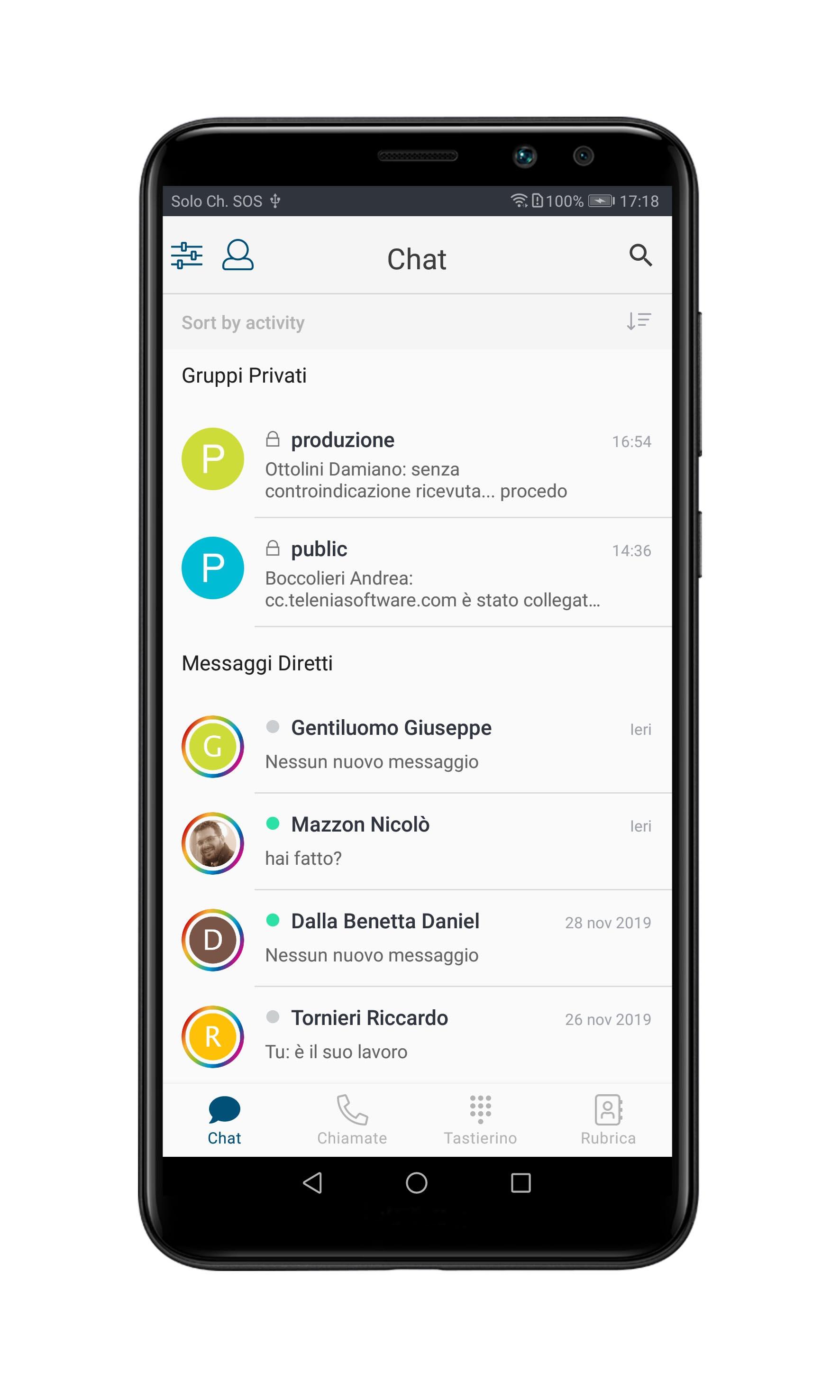 - Внутренний чат: отправляйте и получайте текстовые, аудио и видео сообщения или обменивайтесь файлами и изображениями со своими внутренними контактами или рабочими группами, с возможностью создания избранного чата.