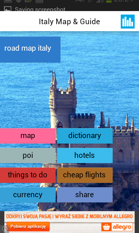 100% Offline карта Украины с базой данных POI. Наша Украина форума дорожная карта (карта маршрута), в основном отображает дорог и транспортных связей, а не природные географической информации. Offline Украина Карта также показывает не автомобильных туристических маршрутов, и более подробные область вокруг городах: Киеве, Харькове, Днепропетровске, Одессе, Донецке и Крыму Вы можете использовать эту карту без передачи данных в роуминге, WiFi соединения и скрытых расходов! ОСОБЕННОСТИ: - Полное форума карта с GPS геолокации (100% в автономном режиме) - Курс валют: евро, британский фунт, доллар США, китайские Youan, японская иена, корейский вон, рупия, русский рубль (Offline) - Разговорник (Словарь туриста) - Многоязычный интерфейс - В отелях (модуль он-лайн) - Достопримечательности и экскурсии - POI Finder (например: гостиницы, паркинги, рестораны, автозаправочные станции) 10 поддерживаемых языков: Английский, немецкий, французский, русский, корейский, португальский, испанский, японский, итальянский, китайский Украина занимает 8-е место в Европе по количеству туристов, посещающих, по данным Всемирной туристской организации рейтинга. Украина является назначение на перекрестке между Центральной и Восточной Европы, между севером и югом. Он имеет горные хребты - Карпаты подходят для катания на лыжах, походы, рыбалка и охота. Береговая линия на Черном море является популярным местом для отдыхающих летом. Украина имеет виноградники, где они производят родной вин, руины древних замков, исторических парков, православной и католической церквей, а также несколько мечетей и синагог. Киев, столица страны имеет много уникальных структур, таких как Софийский собор и широкие бульвары. Есть другие города хорошо известны туристам, таких как порт города Одессы и старый город Львов на западе. Крым, немного «Континент» своей собственной, является популярным местом отдыха для туристов, для купания и загара на Черном море с его теплым климатом, скалистые горы, плато и древних руин. Города там включают: Севастополь и Ялта - расположение мирной конференции в конце Второй мировой войны. Посетители могут также принимать круизные туры на корабле по Днепру от Киева до побережья Черного моря. Украинская кухня имеет долгую историю и предлагает широкий выбор оригинальных блюд.