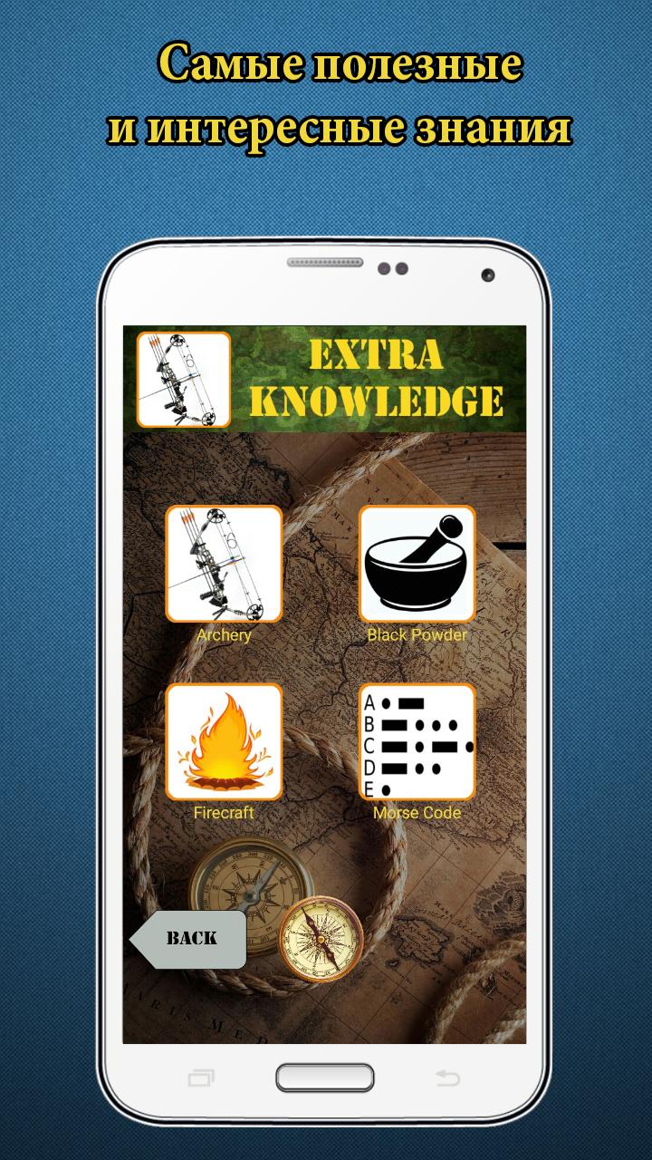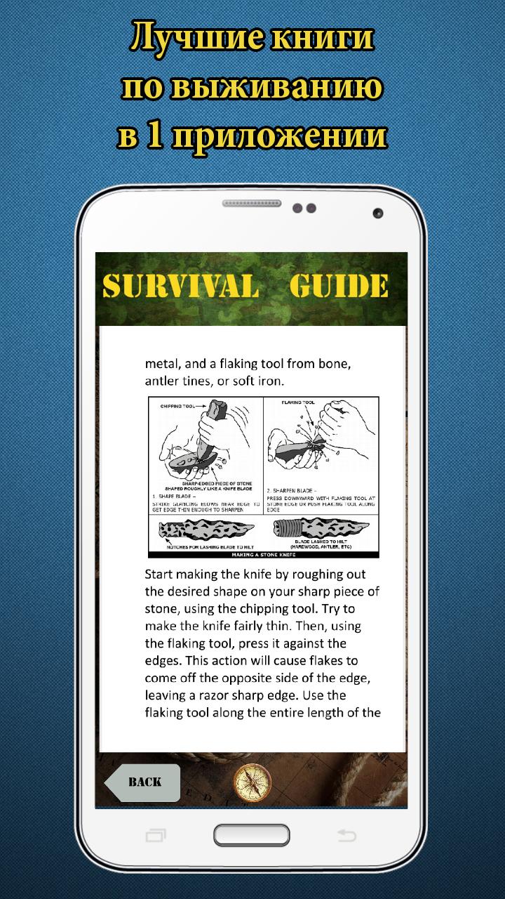 ★★★ Новая эволюция Универсального Руководства по Выживанию ★★★ Мы полностью переделали и переписали наше приложение, и теперь рады представить вам полноценную версию с удобным дизайном, расширенным наполнением и дополнительными функциями, для всех, пользователей, которые решили стать экспертами в области Выживания. Если вы настоящий Выживальщик, Заядлый турист, Охотник, или только новичок в техниках выживания, который хочет быть похожим на знаменитого Беара Гриллса - это лучшее приложение для эволюции ваших навыков! Внимание! Приложение в настоящее время работает только на английском языке. Переводы будут сделаны позже. В Новой версии: ➢ Дополнительная информация о выживании ➢ Новые схемы браслетов из Паракорда ➢ Возможность печатать материалы в версии Pro ➢ Возможность использования приложения без Рекламы (Никакой рекламы в версии PRO) ➢ Функциональность для покупки версии Pro на 1, 3, 6 месяцев и 1 год. ➢ Возможность получить бесплатную версию Pro, путем репоста ссылки в Facebook или других социальных сетях! Это уникальный справочник, который поможет вам выжить в дикой природе, на суше и на море, в джунглях и бурной реке, в опасном лесу и смертельной пустыне, на морозном Севера и чрезвычайно жарком Юге. Ultimate Survival Guide поможет вам выжить и в любой точке мира, и в любой ситуации. В мире есть множество книг бестселлеров о выживании в дикой природе, и теперь у вас есть возможность всегда носить все самые важные знания с собой на своём мобильном телефоне. Фактически это полноценная Школа Выживания в вашем кармане. И это приложение будет работать в автономном режиме в любой ситуации, пока у вас не кончится заряд батареи. В этом Приложении по выживанию вы найдете самые полезные и важные навыки и советы из книг, от известных представителей спецслужб, из текста руководства по выживанию для спецназа, а также советы по выживанию от экспертов реального выживания, таких как знаменитый Беар Гриллс. Кроме того, если во всем мире происходит катастрофа, аварийно-спасательные службы будут напряжены до предела. У них просто не хватит сил и средств, чтобы позаботиться обо всех. Не ждите спасения! Власти могут исчерпать свои ресурсы очень быстро, и более того, они могут долго распределять полномочия, прежде чем отреагируют на ситуацию. Только от Вас зависит ваше собственное выживание и жизнь ваших близких! ★★★ Это интерактивное издание состоит из ★★★ ➢ Книги по выживанию ✔ Универсальный гид по выживанию ✔ Руководство по выживанию в различных ситуациях ➢ Браслет Выживальщика (Браслеты из Паракорда) ✔ 4 типа полезных для выживания браслетов из Паракорда + 1 Сумка из Паракорда ➢ Материал и оборудование ✔ Рыбалка ✔ Узлы и Веревки ✔ Ножи ➢ Компактный набор выживания ✔ Идеальный и компактный комплект выживания, который вы можете сделать самостоятельно ➢ Дополнительные Навыки ✔ Стрельба из лука ✔ Разжигание Огня ✔ Чёрный Порох ✔ Азбука Морзе ➢ Полезные приложения Сенсация! Только в нашем Приложении в качестве бонуса вы получаете 2 действительно полезных приложения для выживания: ======================================================================== ★ КОМПАСС - Чтобы легко найти правильное направление ======================================================================== ★ Фонарик Выживальщика - фонарик с функцией сигнала SOS. Вы можете привлечь помощь, путем передачи светового сигнала для спасательных с
