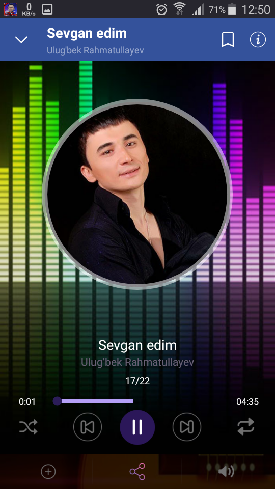 Xalqimizning suyukli honandasi, o`zining shirali ovozi, hushfe`lligi bilan muhsislarning ko`nglidan chuqur joy olgan iste`dodli san`atkor Ulug'bek Rahmatullaev Ibrohimovich 1982 yil 29 yanvar Toshkent shahrida, eski shaharda ziyolilar oilasida tavallud topgan. 1999 yil Ulug'bek Toshkent Davlat Sharqshunoslik institutiga tarix fakultetiga o'qishga kiradi. Institutda tahsil olib yurgan kezlari Ulug'bekning yoshligidagi orzularidan biri ushalgan. Bu ustozi Farruh Badalboev bilan tanishish edi. Ilk qo'shig'ini 2000 yilda "Tarona Records" studiyasida yozgan. Qo'shiq nomi "Bu alam" edi. Ustozi Farruh Badalboev bilan ko'p yillik mehnat orqali professional darajada ishlashni o'rgandi. Farruh Badalboevning Ulug'bekka ilk taqdimi "Yorim" taronasi bo'lgan. Bu tarona deyarli 9 oy davomida ishlangan. Ulug'bek Rahmatullaev 2006 yil "Zamin FM" radiosi bosh muharriri Oybek Aliev bilan tanishgan va u inson sabab "Pan terra" studiyasi bilan ilk marotaba shartnoma tuzgan. 2007 yil 6-7 may kunlari Ulug'bek do'sti Sardor Rahimxon bilan Xalqlar do'stligi (hozirgi "Istiqlol") san'at saroyida "Yaqinlarimga" deb nomlangan konsert dasturini taqdim etgan. 2007 yil avgust oyida muhtaram Prezidentimiz Islom Abdug'anievich Karimov tomonidan yoshlarni qo'llab quvvatlash maqasadida ta'sis etilgan "Nihol" davlat mukofoti sovrindori bo'lgan. 2007 yil oxirida esa "M&TVA-2007" taqdimotida "Yilning eng yaxshi erkak xonandasi" va "Yilning eng yaxshi klipi" mukofotlari bilan taqdirlangan. Shuningdek, ko'plab boshqa mukofotlar sovrindori bo'lgan. 2010 yil 25 sentyabr sanasida "Kapalak" nomli ilk yakkaxon konsert dasturini taqdim etgan. Shu o'tgan vaqt mobaynida 2006 yil "Sevma", 2008 yil "Sen ketding", 2010 yil esa "Kapalak" nomli audio albomlarini muxlislariga taqdim etgan. Undan tashqari "Yaqinlarimga" va "Kapalak" deb nomlangan konsert dasturlarining videolarini ham keng omma e'tiboriga tortiq etgan. 2012 yil 26-27- oktabr kunlari "Layloyimsan", 2013 yil 27-28- oktabr kunlari "Sog`inib", 2014 yil 16-17-18-oktabr kunlari "Shirin orzu", 2015 yil 5-6-7-8-noyabr kunlari "Yoshlik qaytmaydi", 2016 yil 9-13 noyabr kunlari "Qirmizi olma" 2017 yil 8-13 noyabr kunlari "Sog`inch fasli" 2018 yil 6-12 noyabr kunlari "Ey yurak" nomli konsert dasturlarini o`z muhlislariga tortiq etgan. Ushbu ilovada honandaning: - Bemehrginam - Binafsha - Bir dona - Devona - Go`dak nolasi - Ilk bor bo`sa - Kapalak - Ko`zlaringga qarab - Alvon lolalar - Meni kechir - Nega ma`yussan - Oshiqi zoringman - Oydin kechalar - Qarada - Sen ketding - Sensiz yashay olaman - Sevgan edim - Shirin orzu - Vatanni sevmoq iymondandur - Yomg`irlar - Yoshlik qaytmaydi - Yulduzim nomli qo`shiqlari joy olgan. Ilova yuzasidan fikr va mulohazalaringizni commentda qoldirishingiz mumkin. Tags: ulugbek, rahmatullayev, ulugbek rahmatullayev qo`shiqlari, ulug`bek rahmatullayev mp3, ulugbek rahmatullayev new mp3, ulugbek rahmatullayev klip, ulugbek rahmatullayev klip skachat, ulugbek rahmatullayev 2018, ulugbek rahmatullayev konsert, uzbek musics, musics, yangi tarona, yangi qo`shiqlar, uzbekcha mp3, uzbekcha qoshiqlar, yangi taronalar, konsertlar, ey yurak konsert dasturi, sog`inch fasli konsert dasturi.