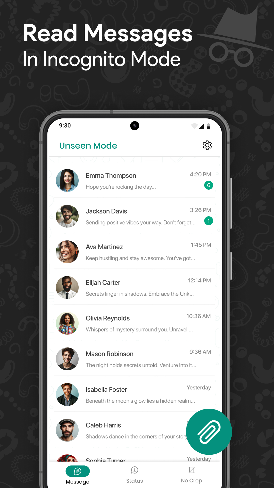 Быстрый и удобный интерфейсНаш продуманный и гибкий пользовательский интерфейс делает Unseen - Incognito Chat Read чрезвычайно простым в использовании.