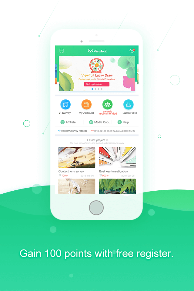 Applicable users : For all mobile phone users who wish to earn extra pocket money during spare time. finger moved,surveys completed,points earned Free registration , no limitation friendly chatting , opinion sharing, make your life colorful friends invited, group organized , to participate together and make more money When you become a Viewfruit member, you also become a representative of the majority of consumers , By filling in online survey, sharing your thoughts and opinions of products and services, your opinions will be awared by enterprises and companies concerned,through Viewfruit. and will encourage them to provide better products or services to help companies improve efficiency, also will help consumers ourselves to enjoy more quality products and services