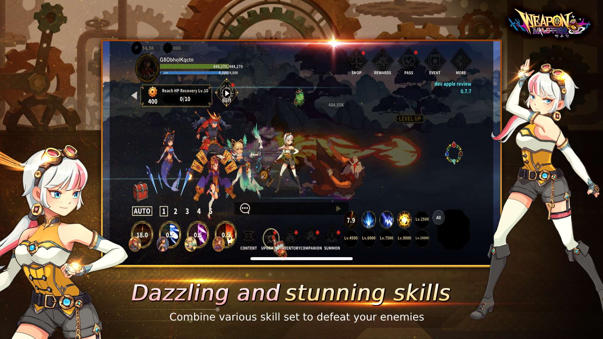 - Разнообразие контента: Станьте стратегом и экономистом, управляйте ресурсами королевства. "Weapon Master Idle" предлагает множество активностей, начиная от "Завоеваний" и "Тренировочных лагерей", заканчивая "Обороной" и даже "Войной богов". Все это позволит вам развить не только могущество вашего рыцаря, но и укрепить отношения с вашими компаньонами.