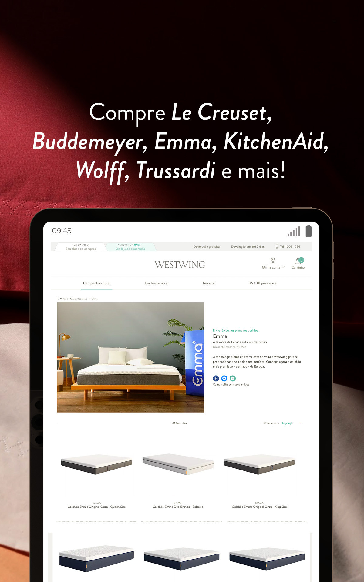 Благодаря выбору основных брендов домашнего декора, косметики и товаров для здоровья вы можете покупать товары от Le Creuset, Buddemeyer, KitchenAid, Missoni Home, Wolff, Trussardi, Porto Brasil с лучшими скидками и предложениями.