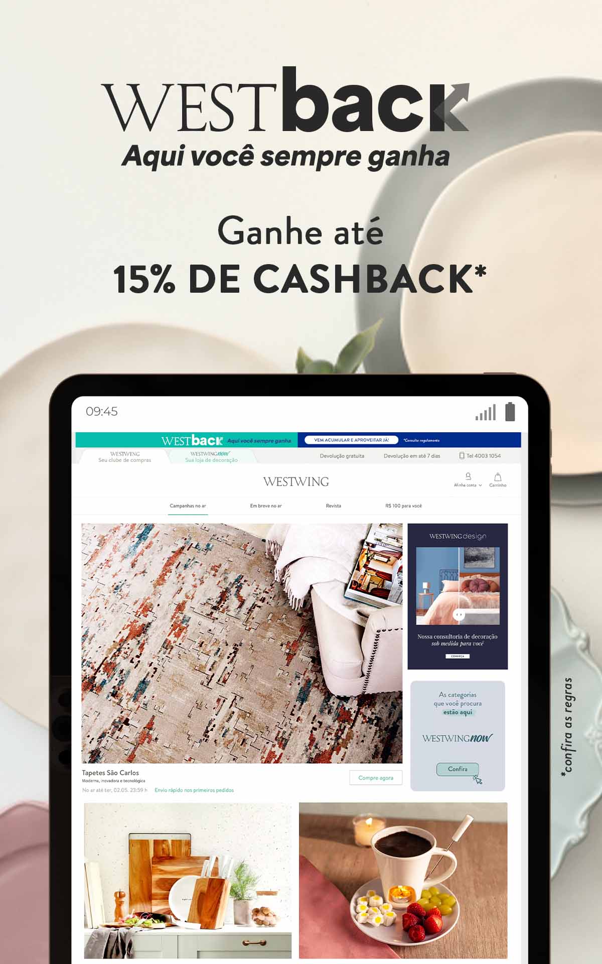 Получите 15% кэшбэка на первую покупку Westwing и 5% кэшбэка на все остальные заказы. Возможность для вас собирать, накапливать... и наслаждаться! *Проверьте правила в приложении.
